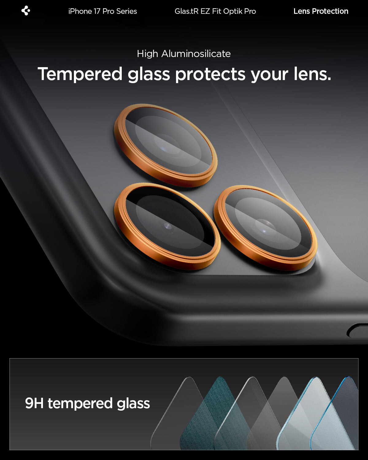 Spigen Optik Pro EZ Fit, Apple, iPhone 17 Pro, Valbestendig, Krasbestendig, Oranje, 2 stuk(s)
