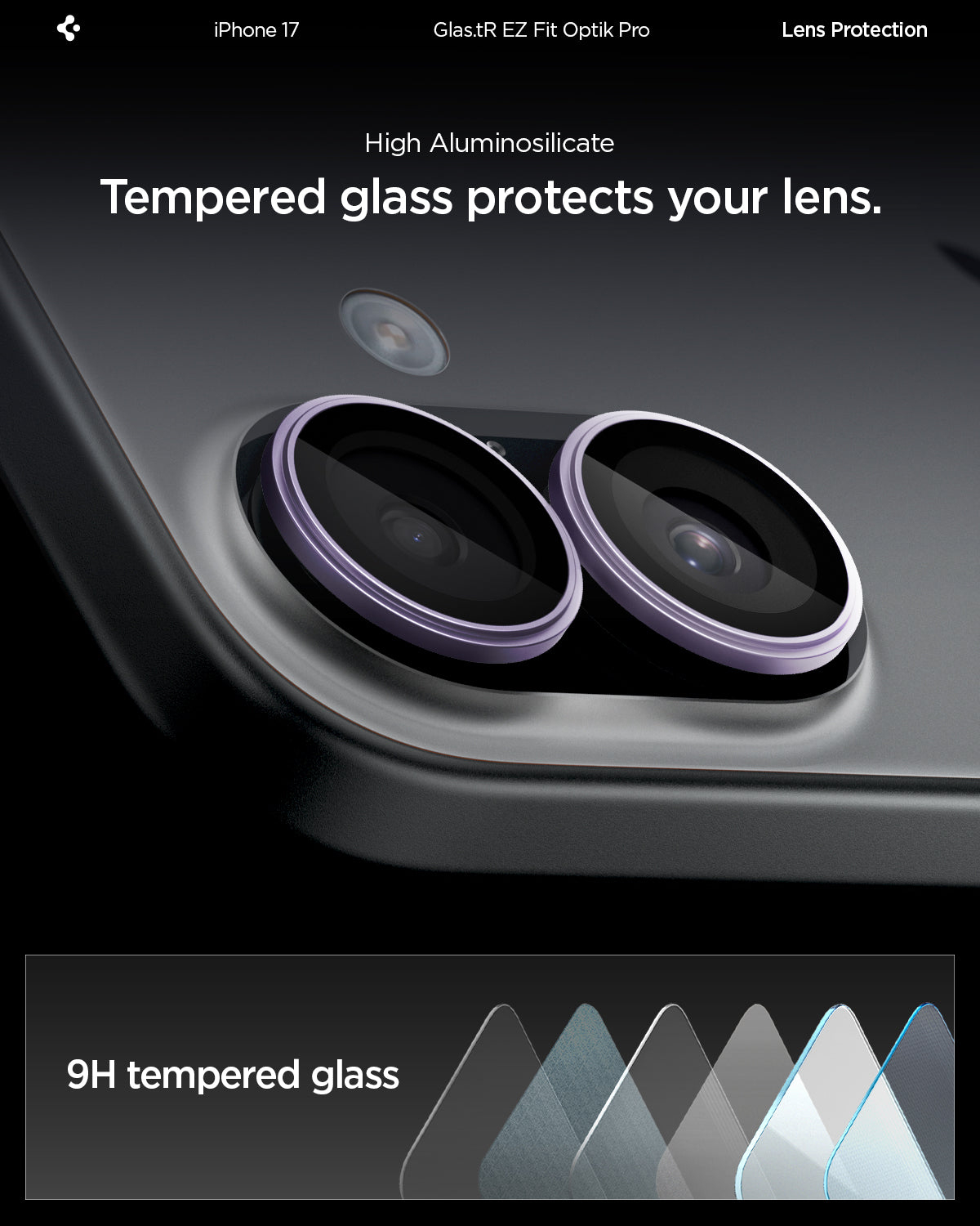 Spigen Optik Pro EZ Fit, Apple, iPhone 17, Valbestendig, Krasbestendig, Paars, 2 stuk(s)