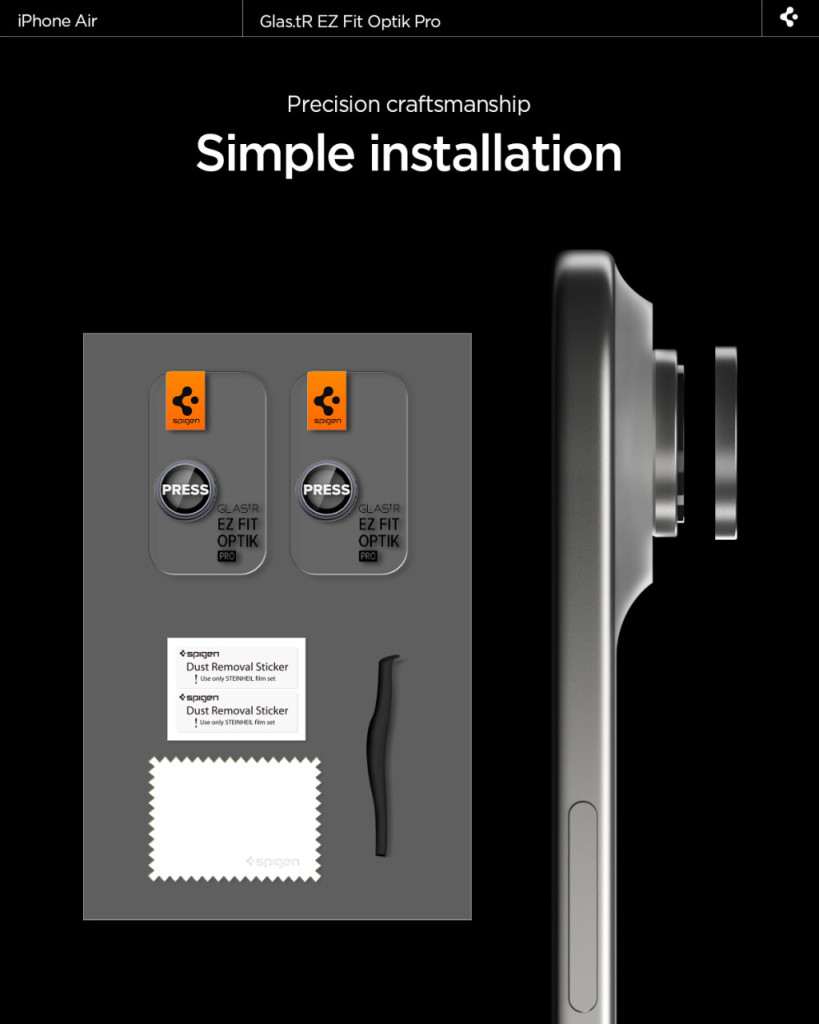 Spigen Glas.tR EZ Fit Optik Pro. Merkcompatibiliteit: Apple, Compatibiliteit: iPhone Air. Materiaal: Gehard glas. Aantal per verpakking: 2 stuk(s)