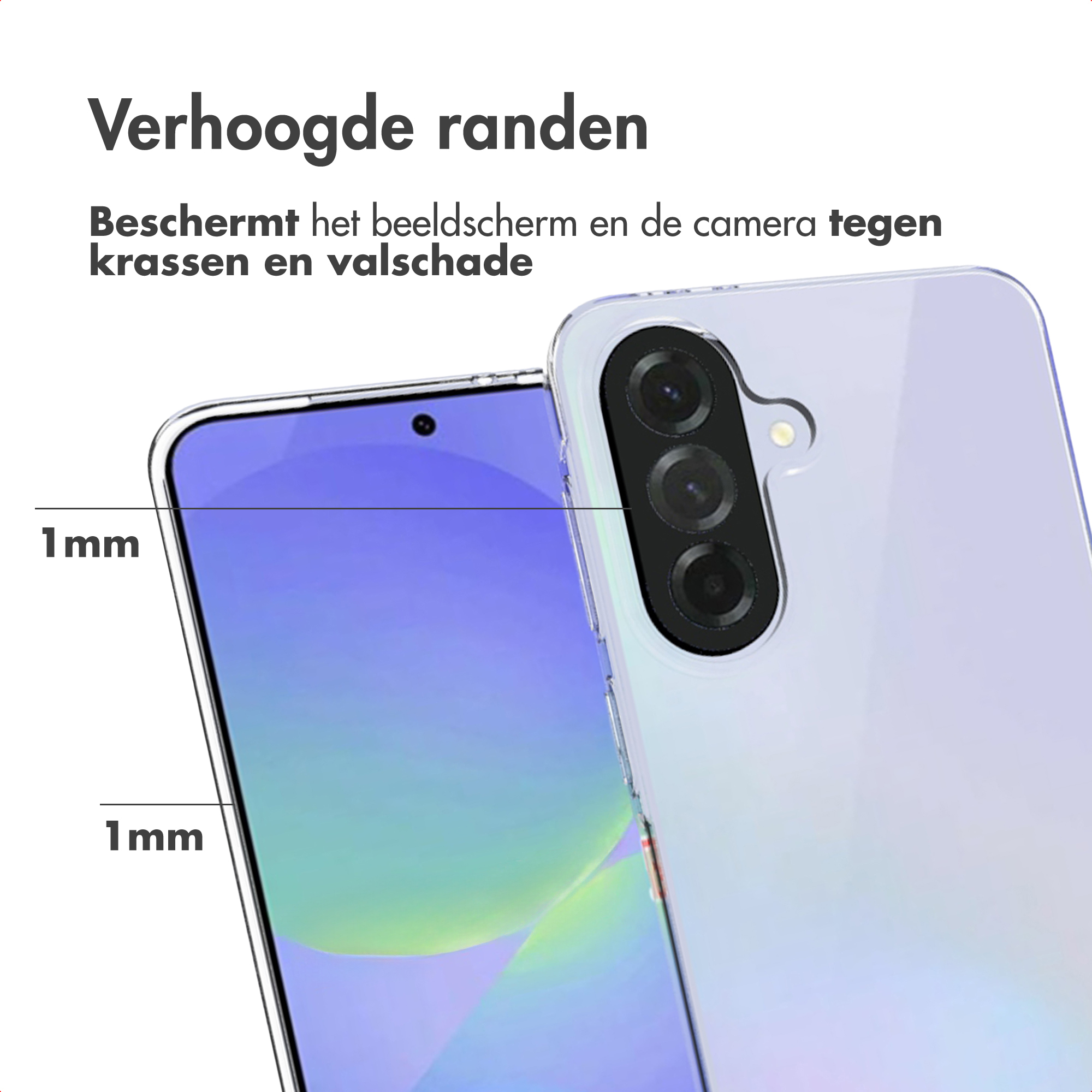 Hierdoor is jouw telefoon beschermd tegen dagelijkse vallen en stoten. De verhoogde randen komen tot over het scherm waardoor de voorkant van je smartphone ook voor een deel beschermd is. Optimale pasvorm Het design van jouw smartphone blijft volledig zichtbaar door het ultra transparante design.