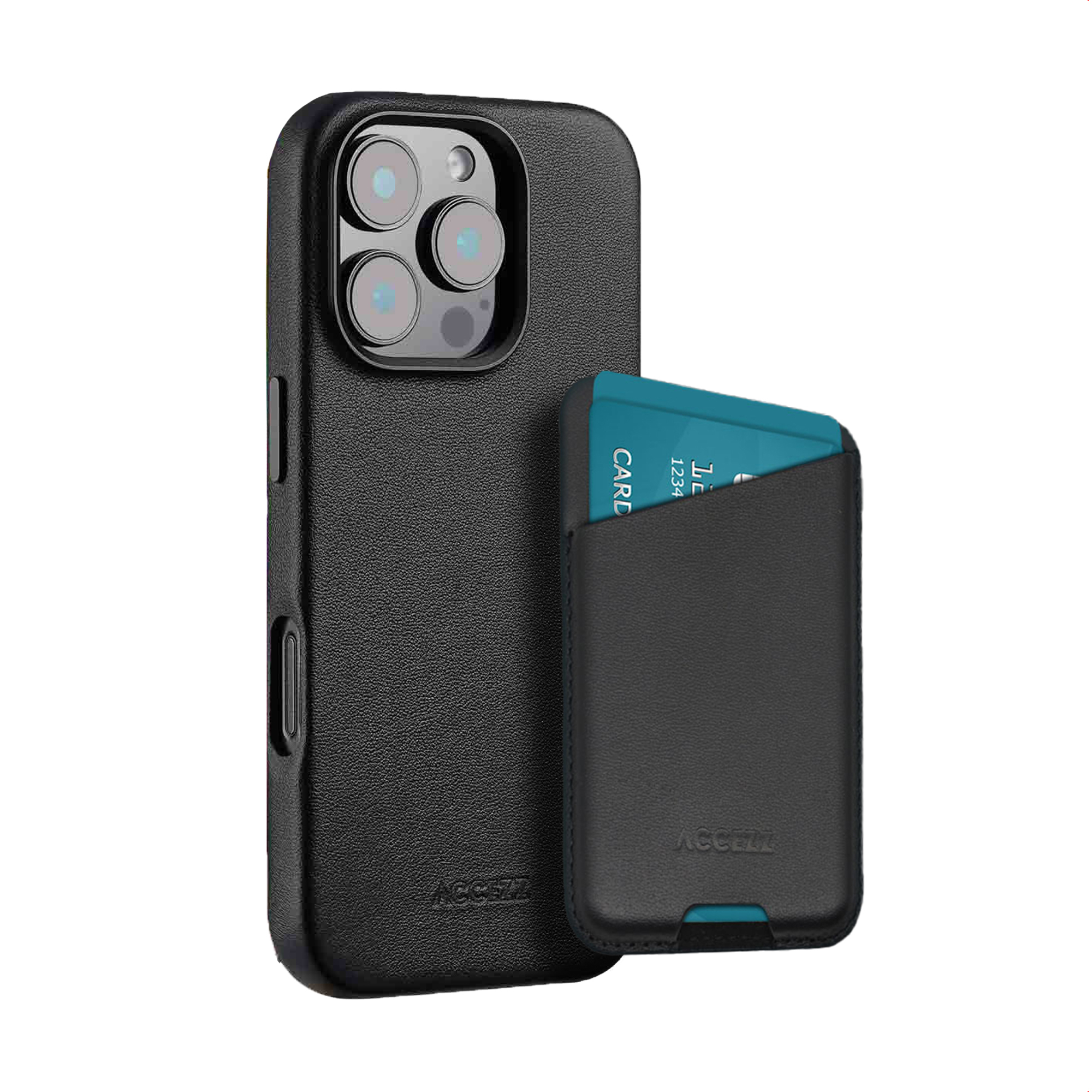 Accezz Echt Leren Hoesje Inclusief Leren MagSafe Wallet, Portemonneehouder, Apple, Apple iPhone 16 Pro Max, 17,5 cm (6.9"), Zwart