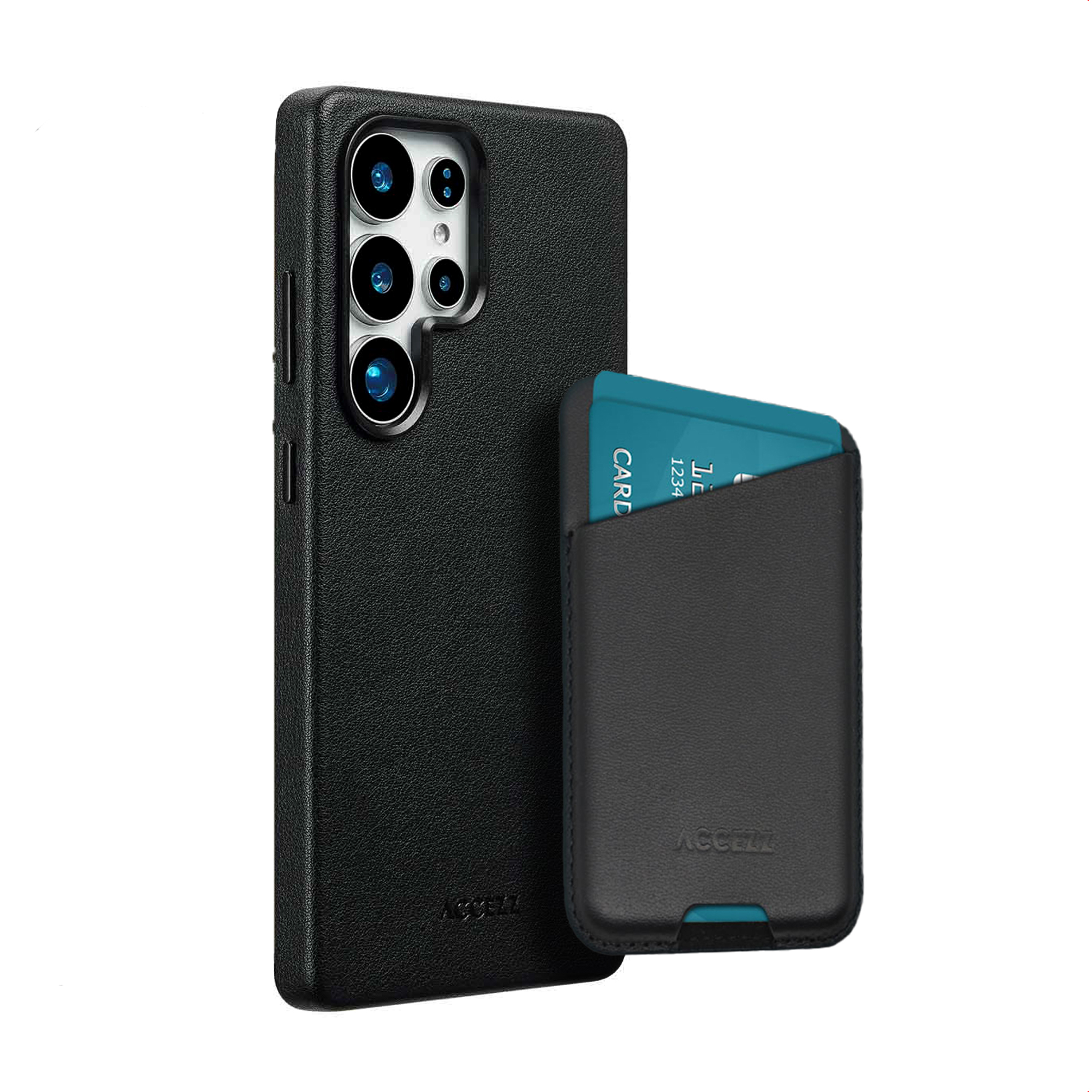 Accezz Echt Leren Hoesje Inclusief Leren MagSafe Wallet, Portemonneehouder, Samsung, Samsung Galaxy S25 Ultra, 17,5 cm (6.9"), Zwart