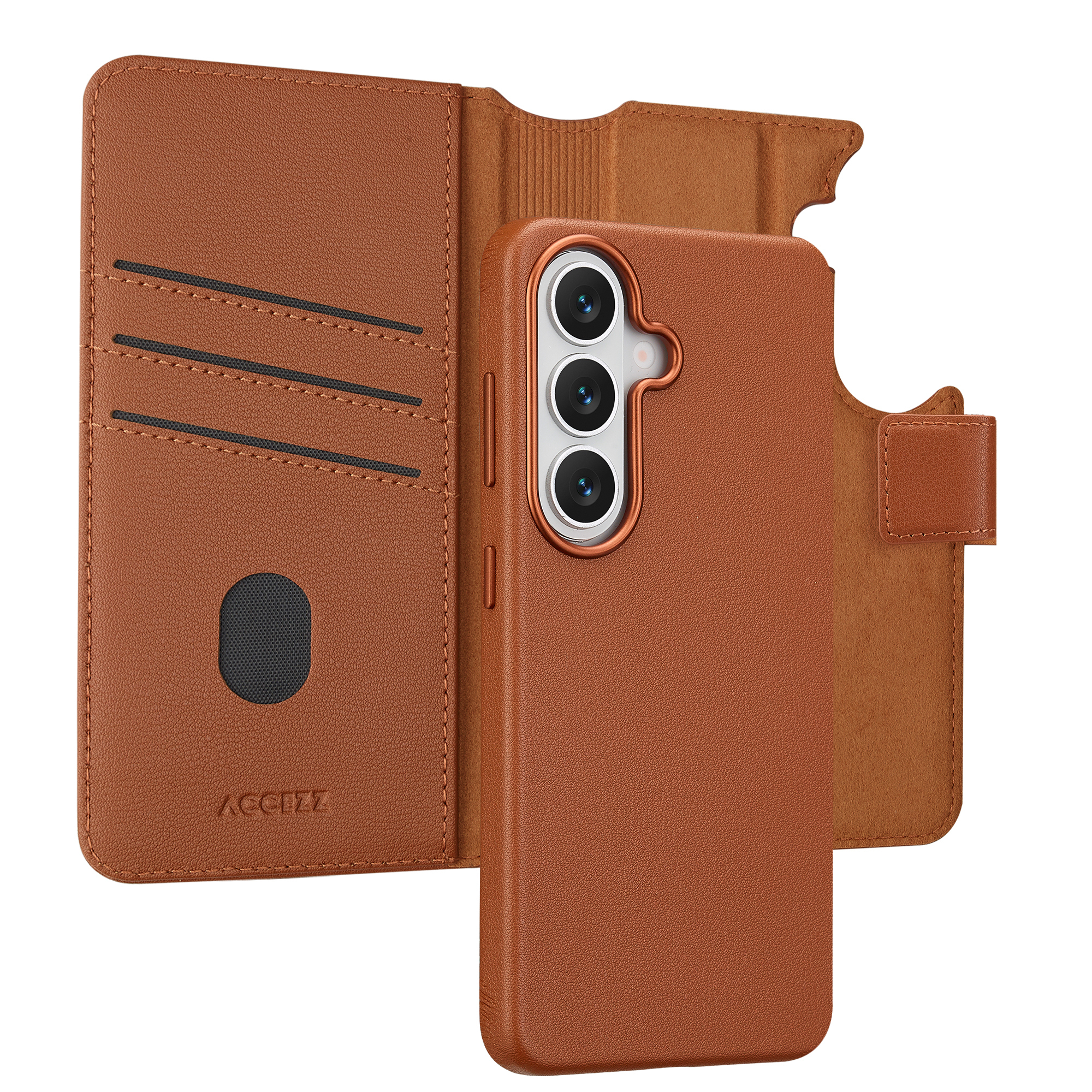 Accezz Leather Bookcase 2-in-1 met MagSafe, Folioblad, Samsung, Samsung Galaxy S26, 16 cm (6.3"), Bruin