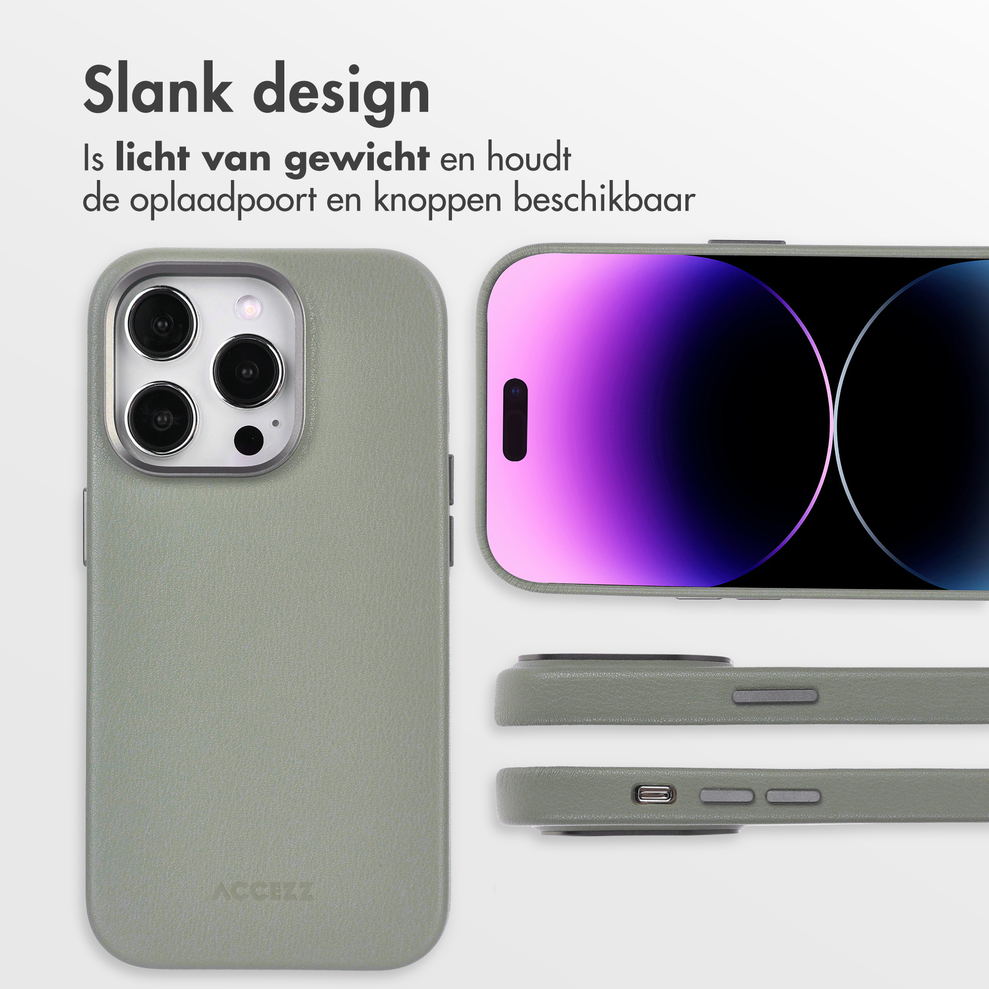 Accezz MagSafe Leather Backcover, Hoes, Apple, Apple iPhone 14 Pro, 15,5 cm (6.1"), Grijs