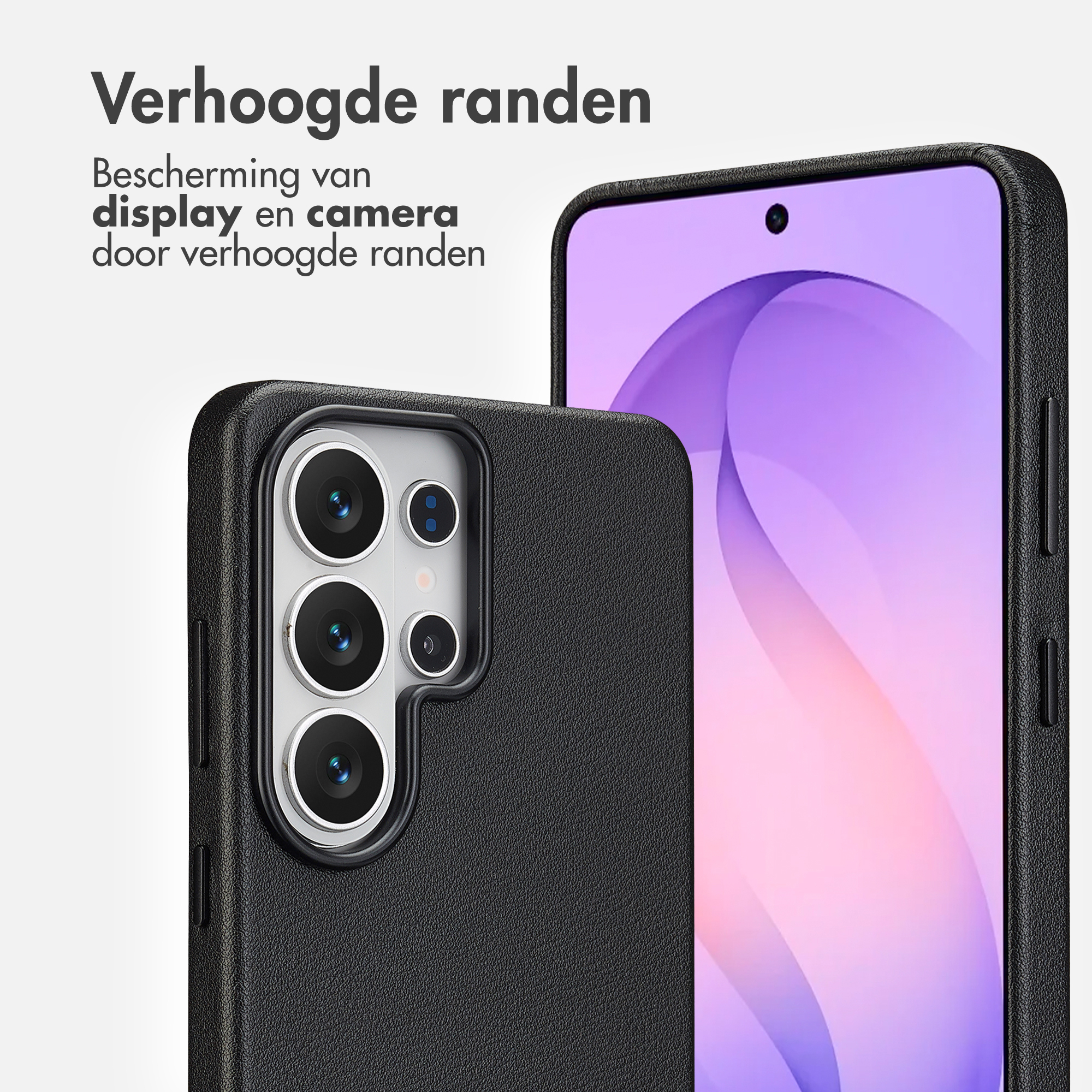 Denk hierbij aan aan een magnetische draadloze oplader, ringgreep of een telefoonhouder. De krachtige magneet zorgt ervoor dat deze accessoires altijd op de ideale plek koppelen en er niet zomaar afvallen. Verhoogde randen Bescherm je kostbare beeldscherm en camera tegen krassen en stoten.