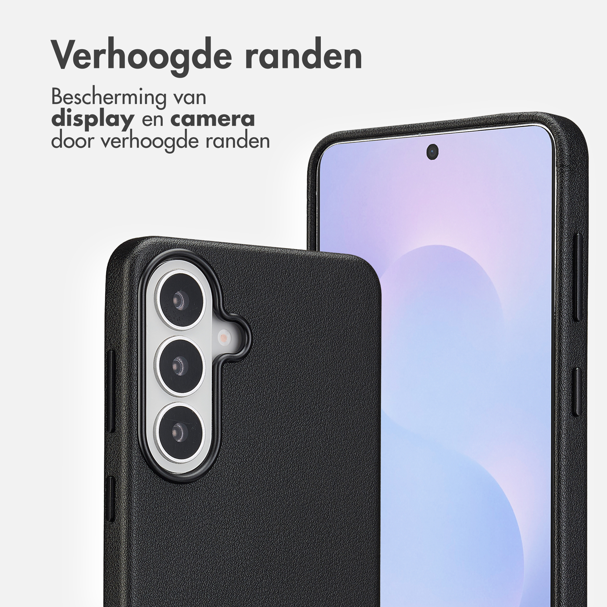 Denk hierbij aan aan een magnetische draadloze oplader, ringgreep of een telefoonhouder. De krachtige magneet zorgt ervoor dat deze accessoires altijd op de ideale plek koppelen en er niet zomaar afvallen. Verhoogde randen Bescherm je kostbare beeldscherm en camera tegen krassen en stoten.