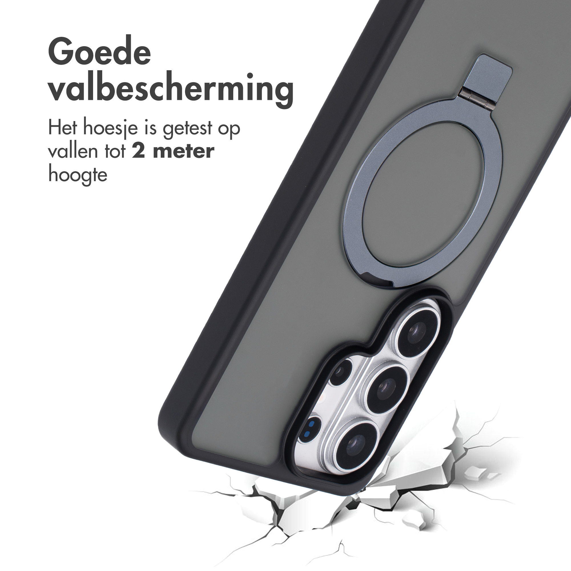 Dit kan zowel in een liggende positie of een staande positie. Daarnaast is de hoes getest op vallen tot 2 meter hoogte, waardoor je jouw smartphone met een gerust hart meeneemt. Geschikt voor MagSafe Dankzij de ingebouwde magneet, maak je moeiteloos gebruik van magnetische accessoires.