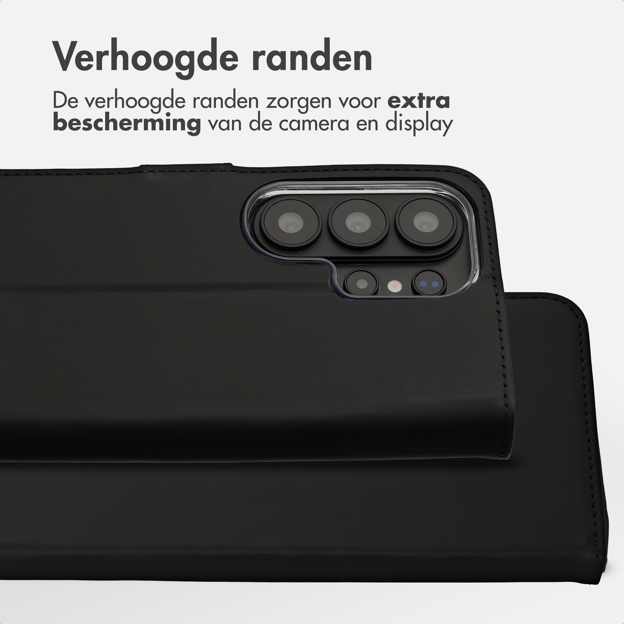 Dagelijkse bescherming van telefoon en camera Aan de binnenkant van de booktype is een flexibele siliconen houder aangebracht. De hoes beschikt over verhoogde randen, waardoor de camera en de display van je telefoon beschermd zijn. Door de krachtige magneetsluiting blijft de hoes goed afgesloten, zelfs tijdens een val of stoot.