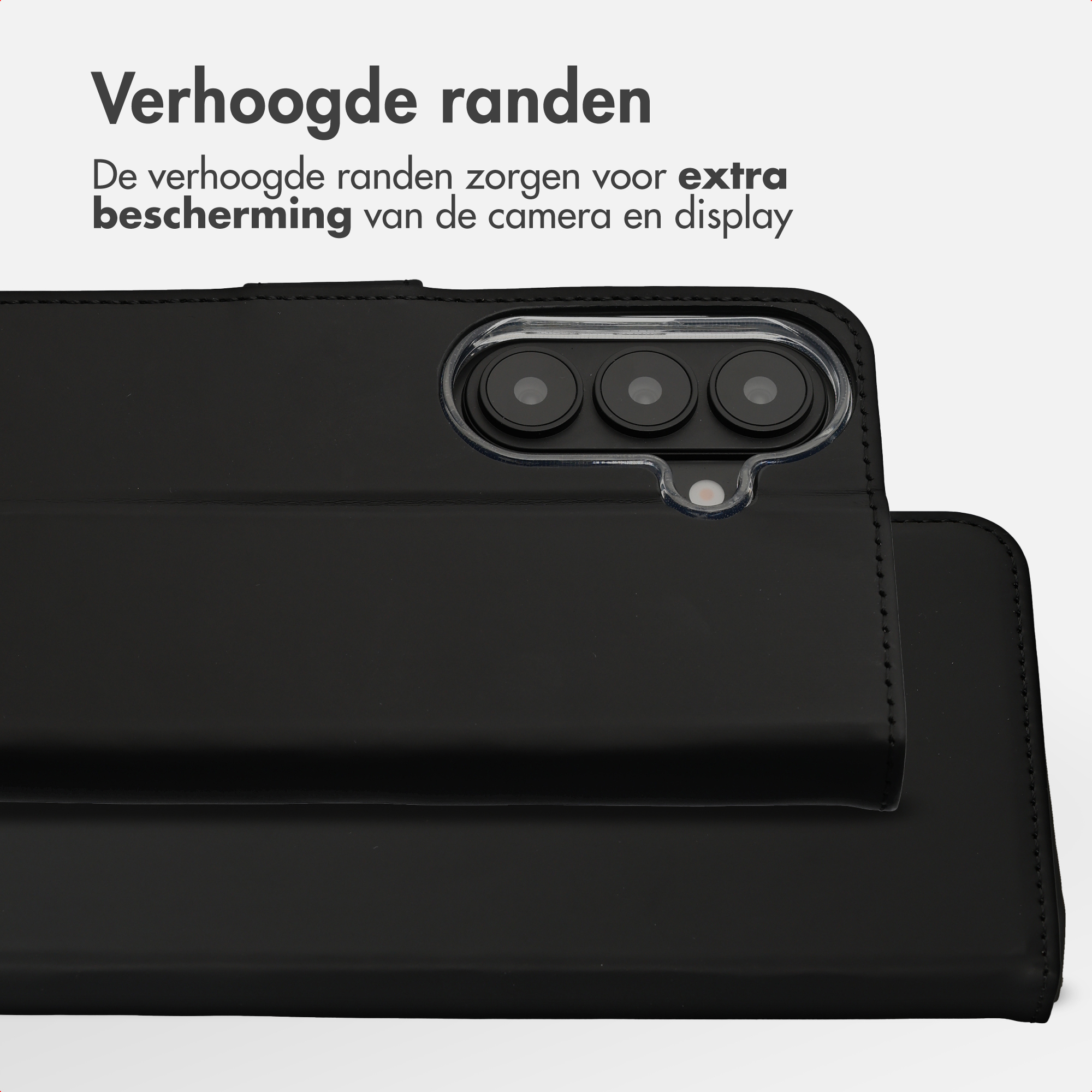 Dagelijkse bescherming van telefoon en camera Aan de binnenkant van de booktype is een flexibele siliconen houder aangebracht. De hoes beschikt over verhoogde randen, waardoor de camera en de display van je telefoon beschermd zijn. Door de krachtige magneetsluiting blijft de hoes goed afgesloten, zelfs tijdens een val of stoot.