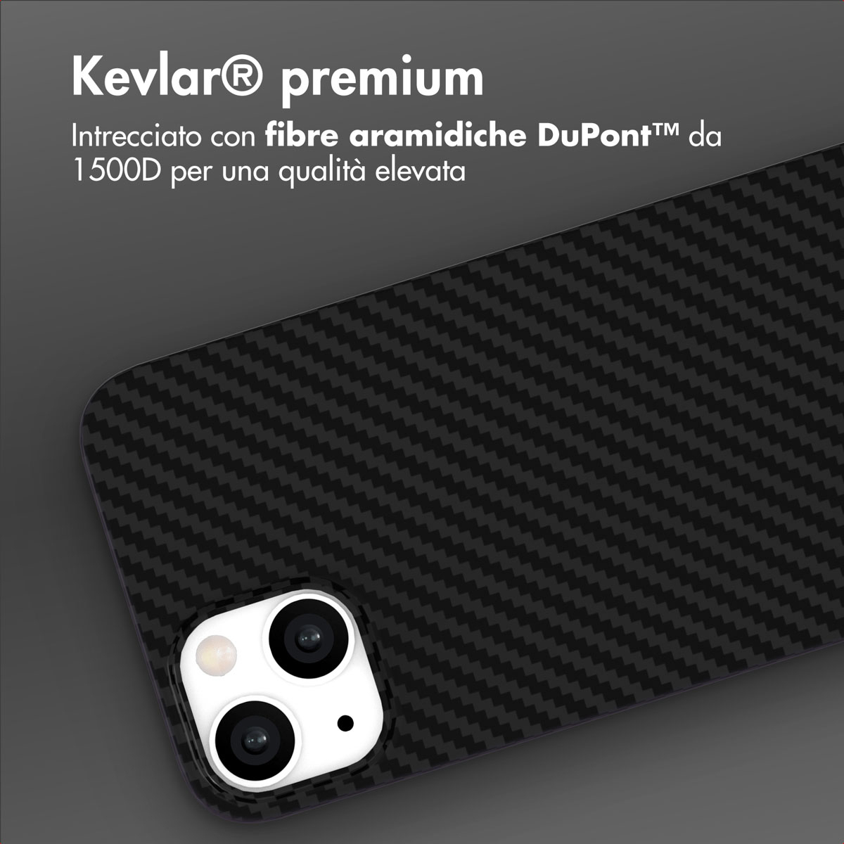 Kevlar Deze backcover is gemaakt van hoogwaardig Kevlar®, specifiek geweven uit DuPont™ Aramid-vezels op 1500D. Dit zorgt voor een hoesje dat niet alleen ultradun en lichtgewicht is, maar ook buitengewoon sterk met de look van Carbon Fiber. De lichtgewichte kevlarvezels bieden een uitzonderlijk duurzaam en ijzersterk ontwerp dat je toestel optimaal beschermt tegen dagelijkse stoten, krassen en slijtage, zonder dat het volume toevoegt.