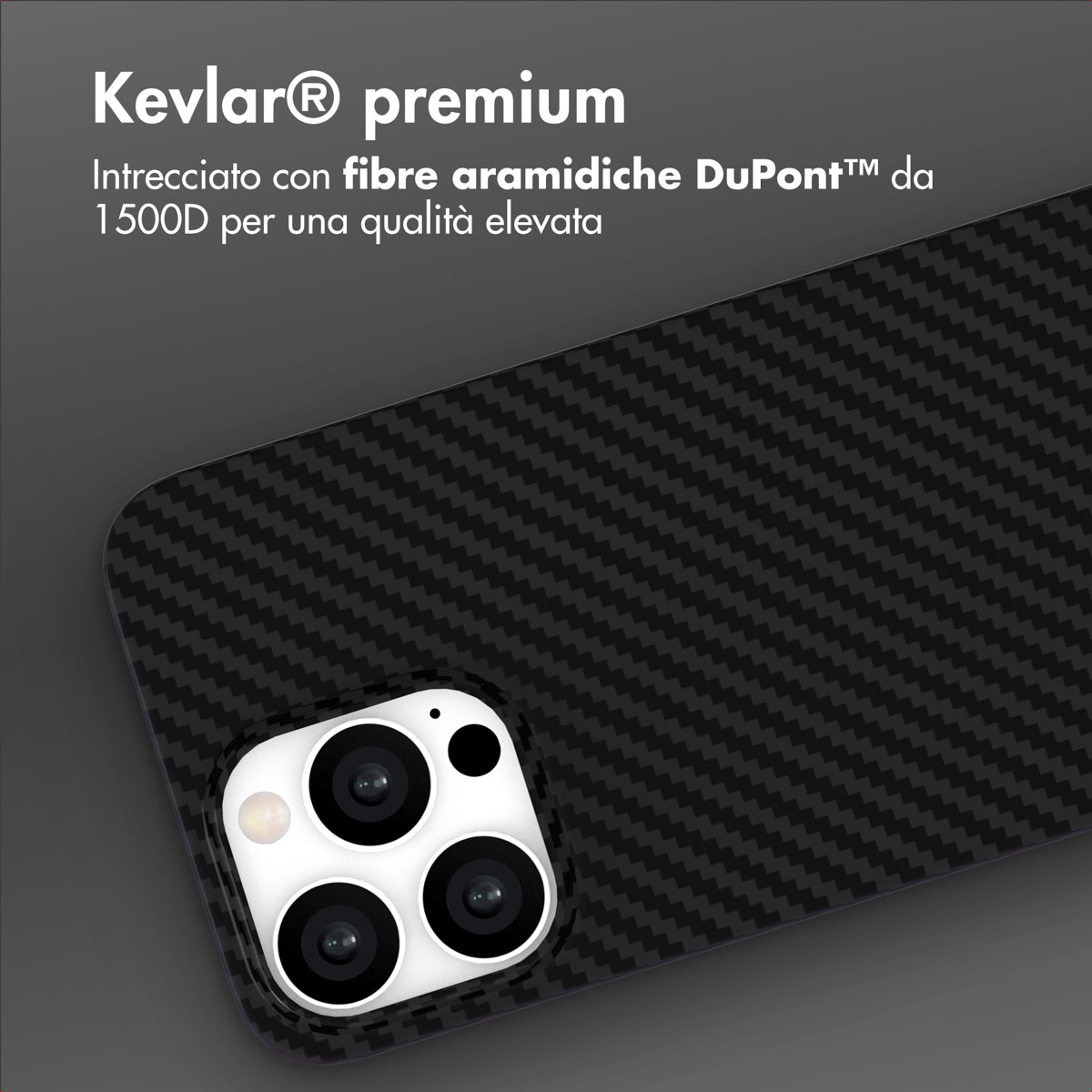 Kevlar Deze backcover is gemaakt van hoogwaardig Kevlar®, specifiek geweven uit DuPont™ Aramid-vezels op 1500D. Dit zorgt voor een hoesje dat niet alleen ultradun en lichtgewicht is, maar ook buitengewoon sterk met de look van Carbon Fiber. De lichtgewichte kevlarvezels bieden een uitzonderlijk duurzaam en ijzersterk ontwerp dat je toestel optimaal beschermt tegen dagelijkse stoten, krassen en slijtage, zonder dat het volume toevoegt.