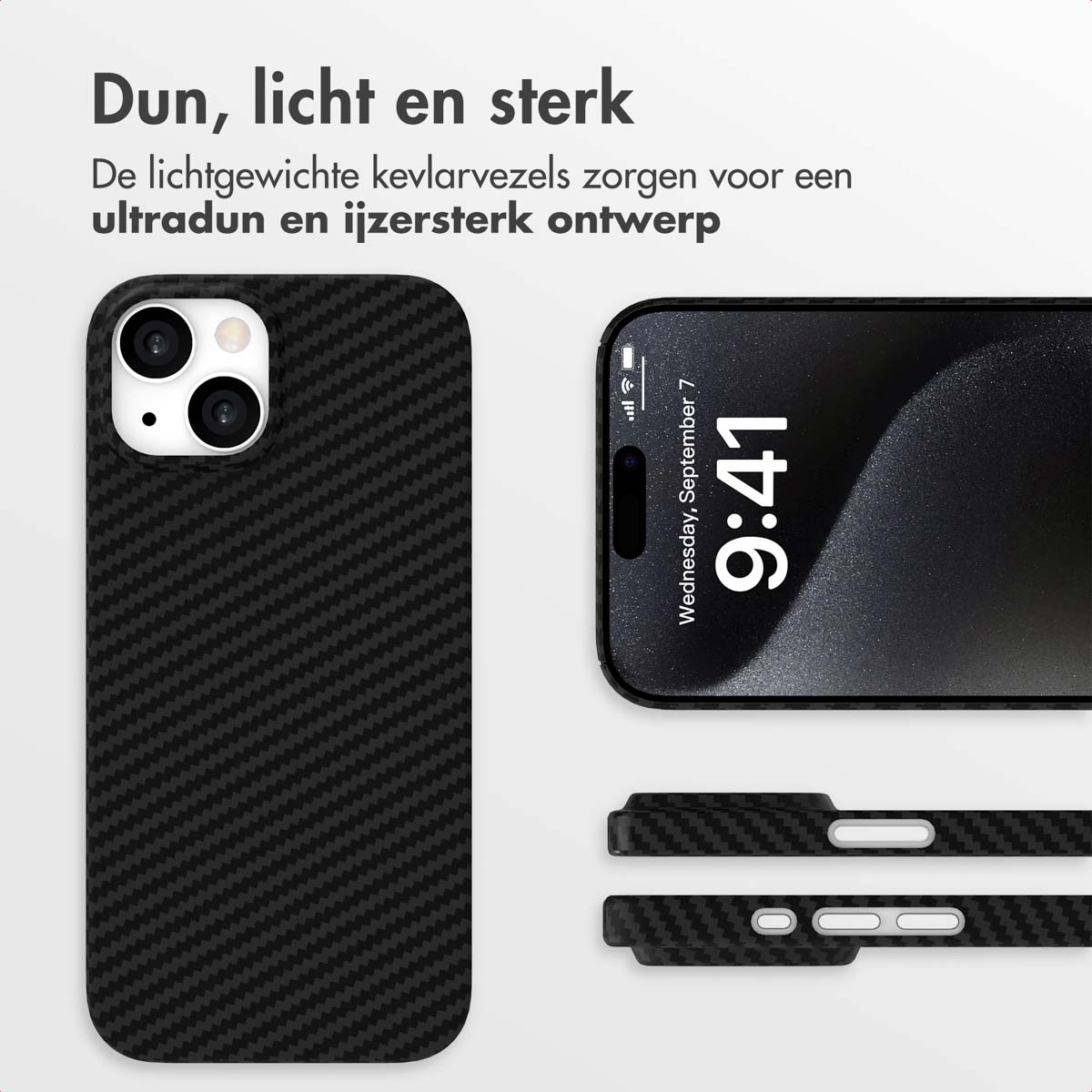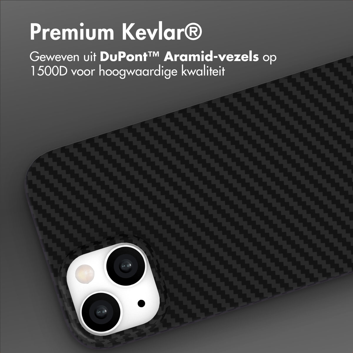 Kevlar Deze backcover is gemaakt van hoogwaardig Kevlar®, specifiek geweven uit DuPont™ Aramid-vezels op 1500D. Dit zorgt voor een hoesje dat niet alleen ultradun en lichtgewicht is, maar ook buitengewoon sterk met de look van Carbon Fiber. De lichtgewichte kevlarvezels bieden een uitzonderlijk duurzaam en ijzersterk ontwerp dat je toestel optimaal beschermt tegen dagelijkse stoten, krassen en slijtage, zonder dat het volume toevoegt.