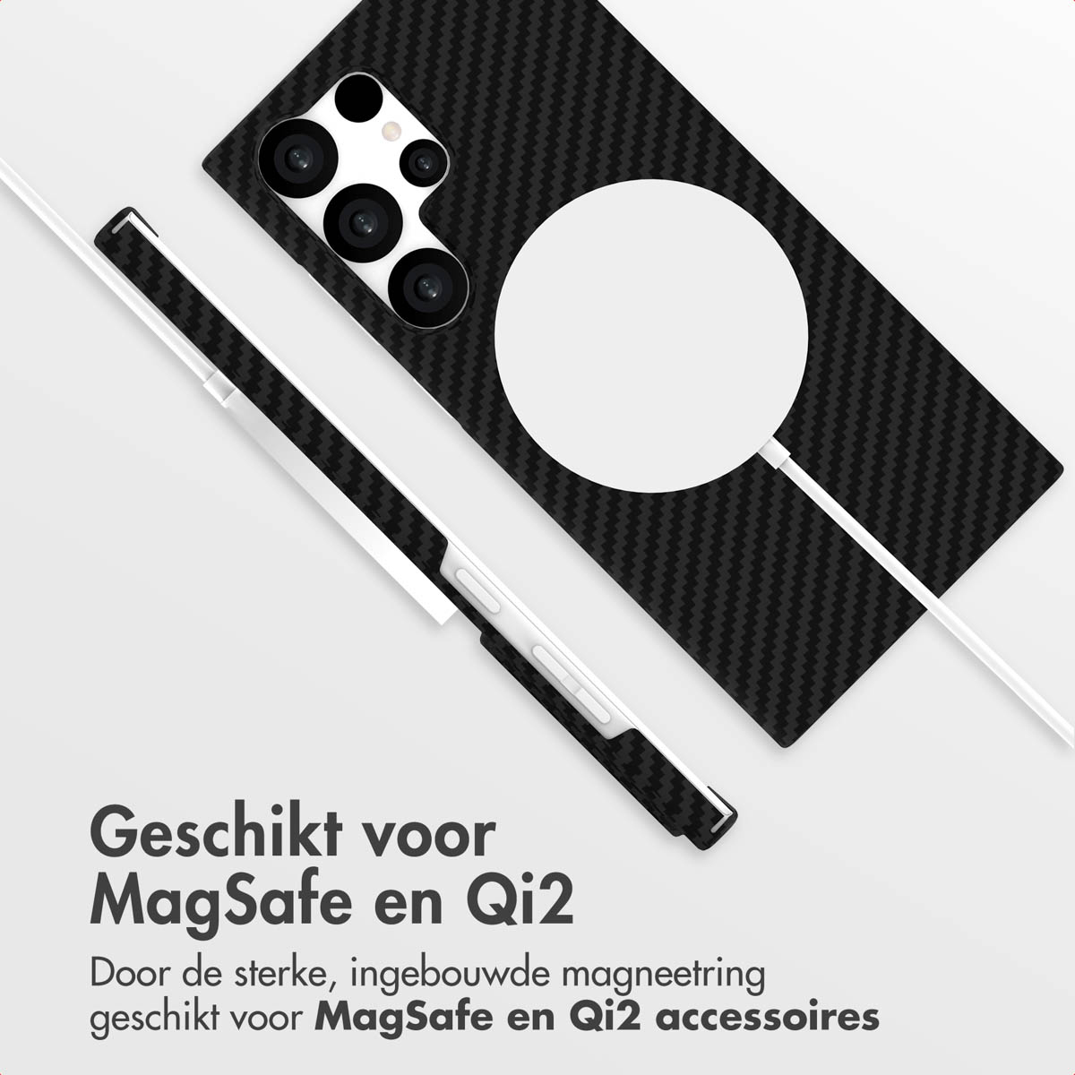 De slijtvastheid van het materiaal zorgt ervoor dat je hoesje er lang als nieuw blijft uitzien, ongeacht hoe intensief je het gebruikt. MagSafe & Qi2 Naast de superieure bescherming, is deze backcover uitermate functioneel. De sterke, ingebouwde magneetring maakt het hoesje perfect geschikt voor zowel MagSafe als Qi2 accessoires.