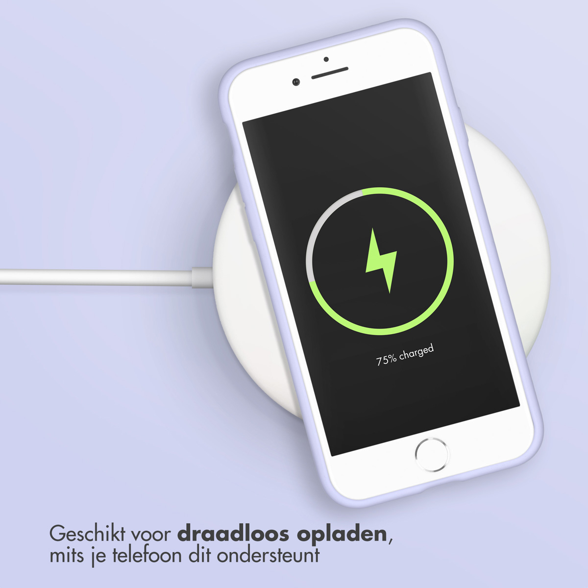 Jouw iPhone SE (2022 / 2020) / 8 / 7 krijgt met de paars Accezz Liquid Silicone Backcover betrouwbare dagelijkse bescherming zonder extra dikte. Het zachte, slanke siliconen sluit nauw om het toestel en absorbeert schokken. De verhoogde randen beschermen het scherm en de camera bij vallen of stoten.