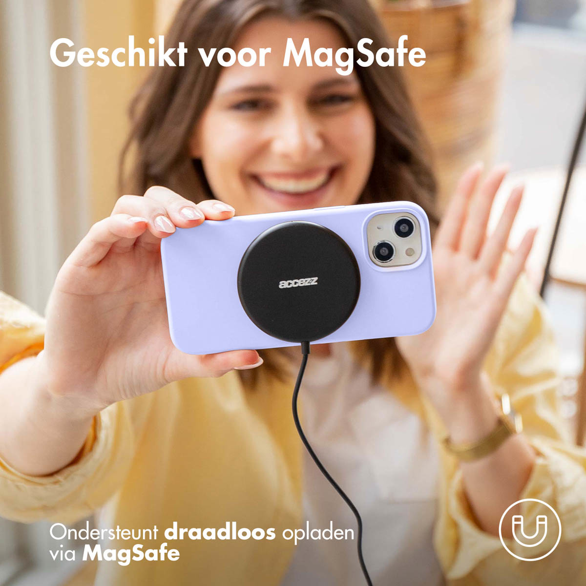 Stijlvol design De Accezz Liquid Silicone Backcover met MagSafe is vervaardigd van stevig siliconen materiaal en heeft een schokabsorberende werking. Daarnaast voorkomt de microfiber voering krassen op jouw toestel. Dit hoesje klik je gemakkelijk vast en zit mooi aangesloten om jouw telefoon.