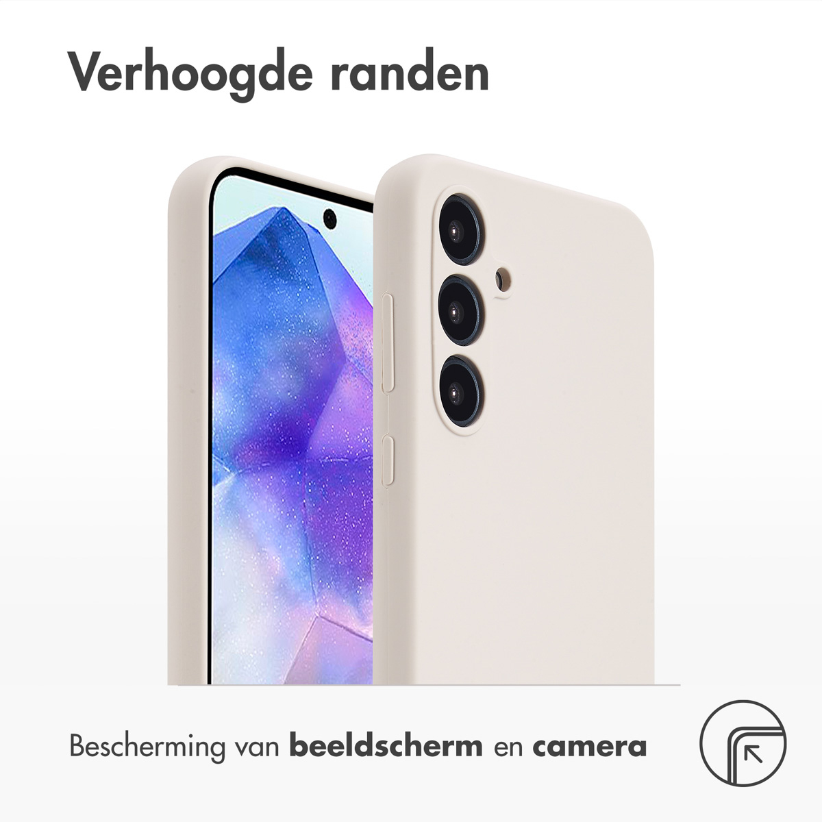 Jouw Samsung Galaxy A55 blijft slank en goed beschermd met de Accezz Liquid Silicone Backcover. Het speciaal gegoten siliconen en zachte TPU absorberen schokken en beperken valschade tot ongeveer 1 meter. Verhoogde randen beschermen zowel het scherm als de camera en de microfiber voering voorkomt krassen aan de achterzijde.