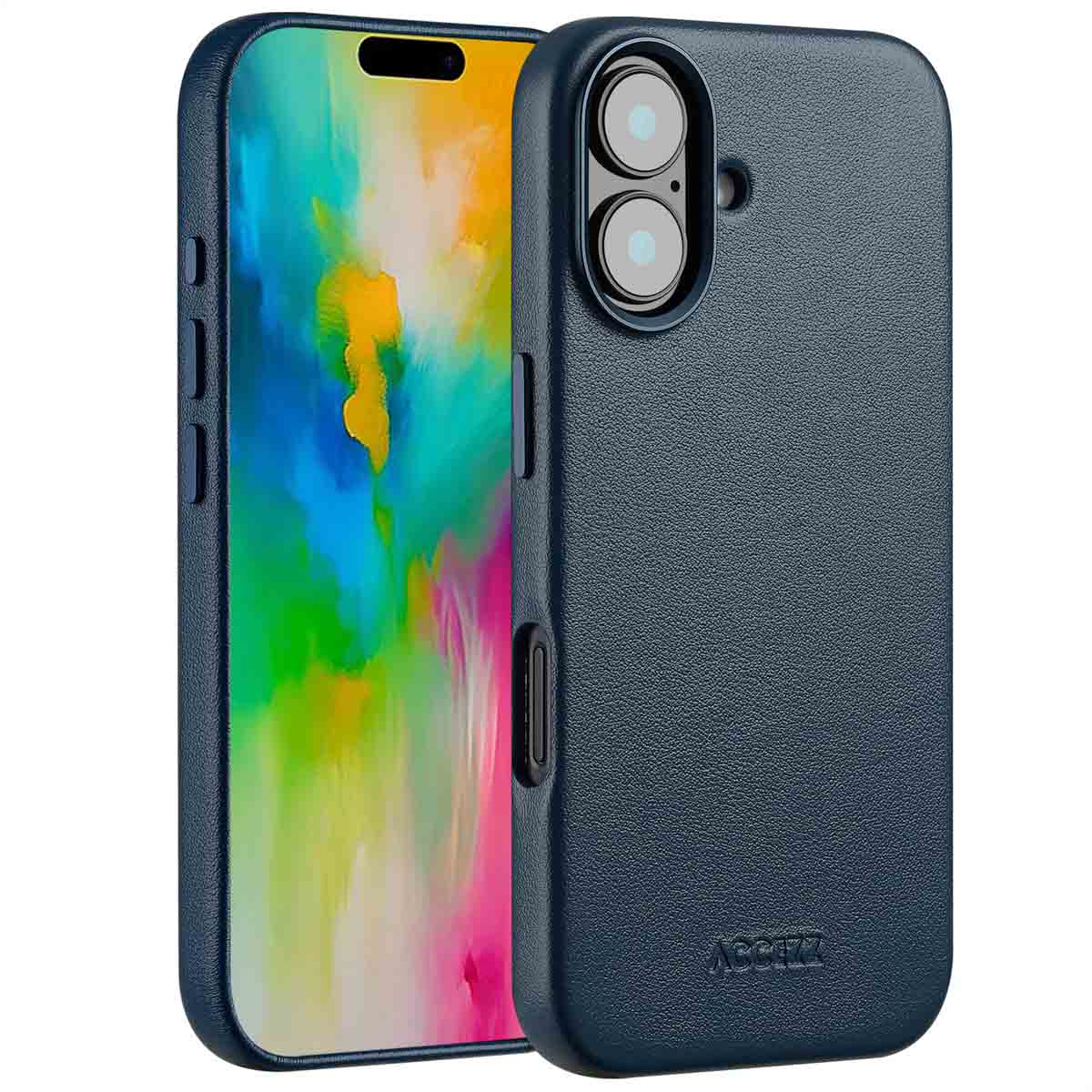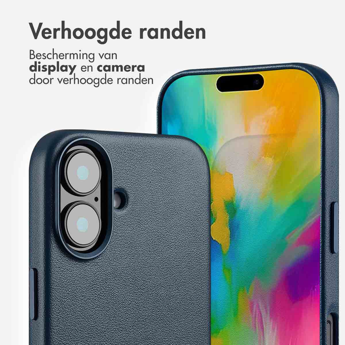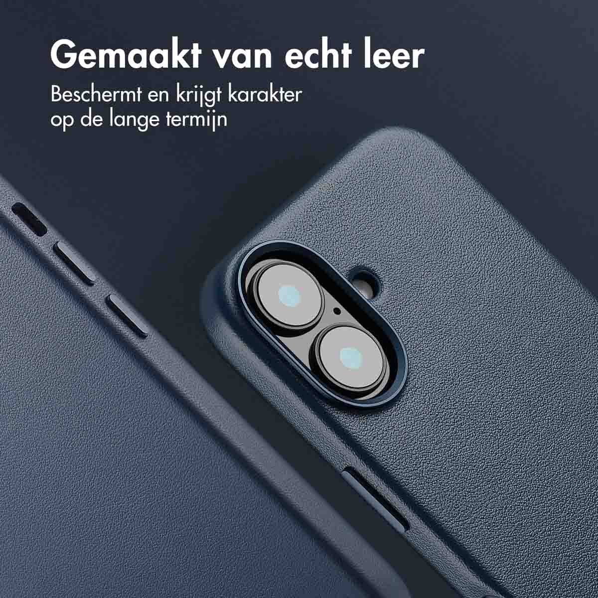 Accezz MagSafe Leather Backcover, Apple, Apple iPhone 16, Donkerblauw