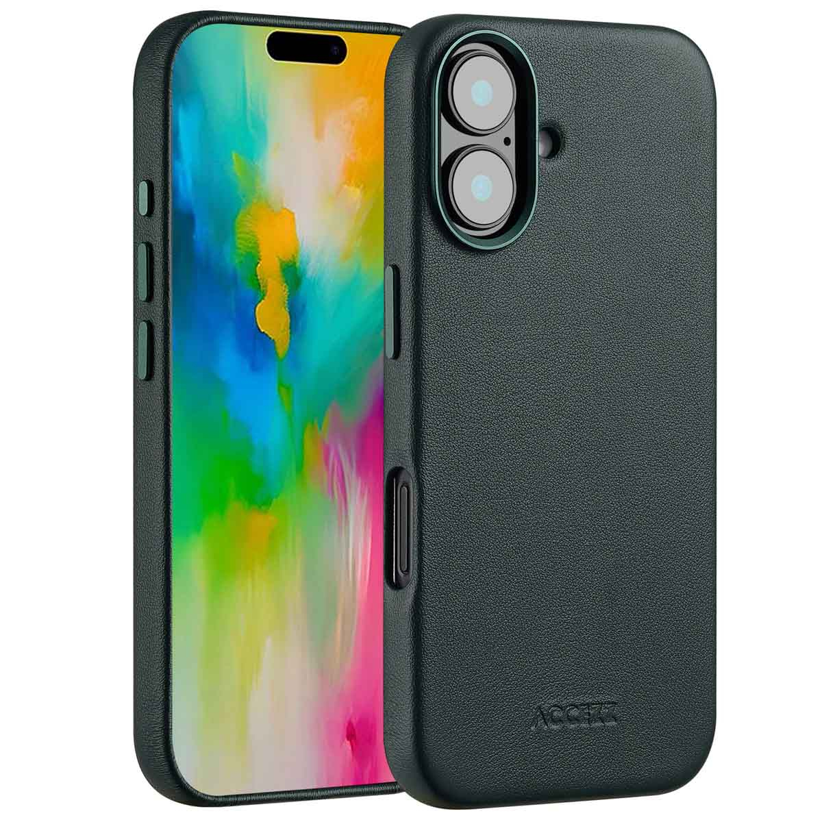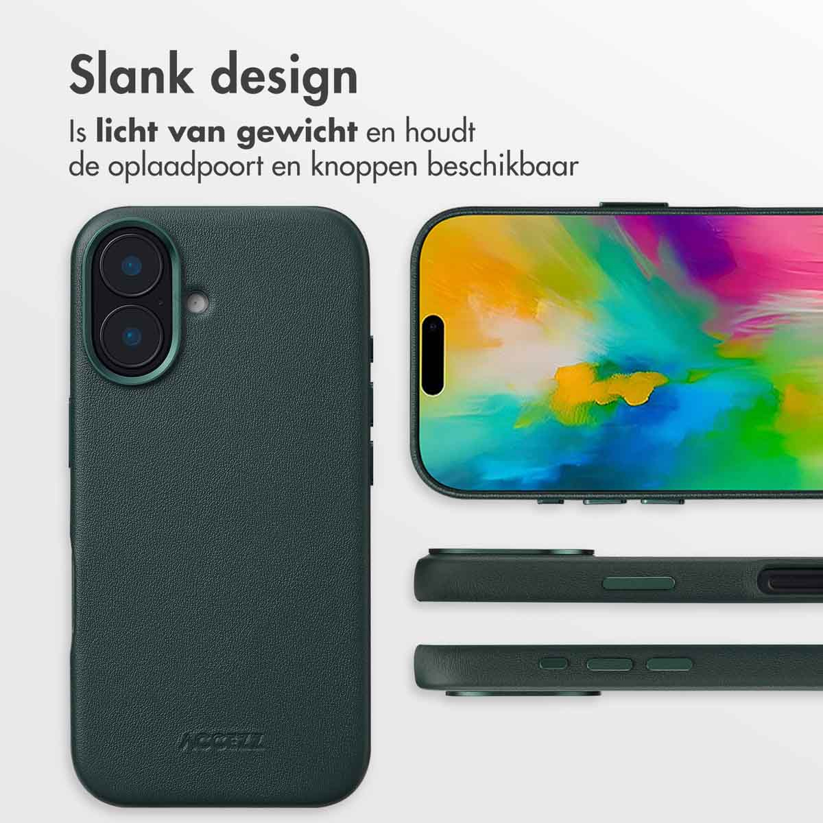 Accezz MagSafe Leather Backcover, Apple, Apple iPhone 16, Donkergroen