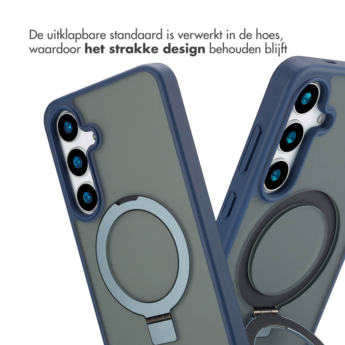 Denk hierbij aan aan een magnetische draadloze oplader, ringgreep of een telefoonhouder. De krachtige magneet zorgt ervoor dat deze accessoires altijd op de ideale plek koppelen en er niet zomaar afvallen. Uitklapbare standaard Met de handige uitklapbare standaard, zet jij je telefoon moeiteloos neer.