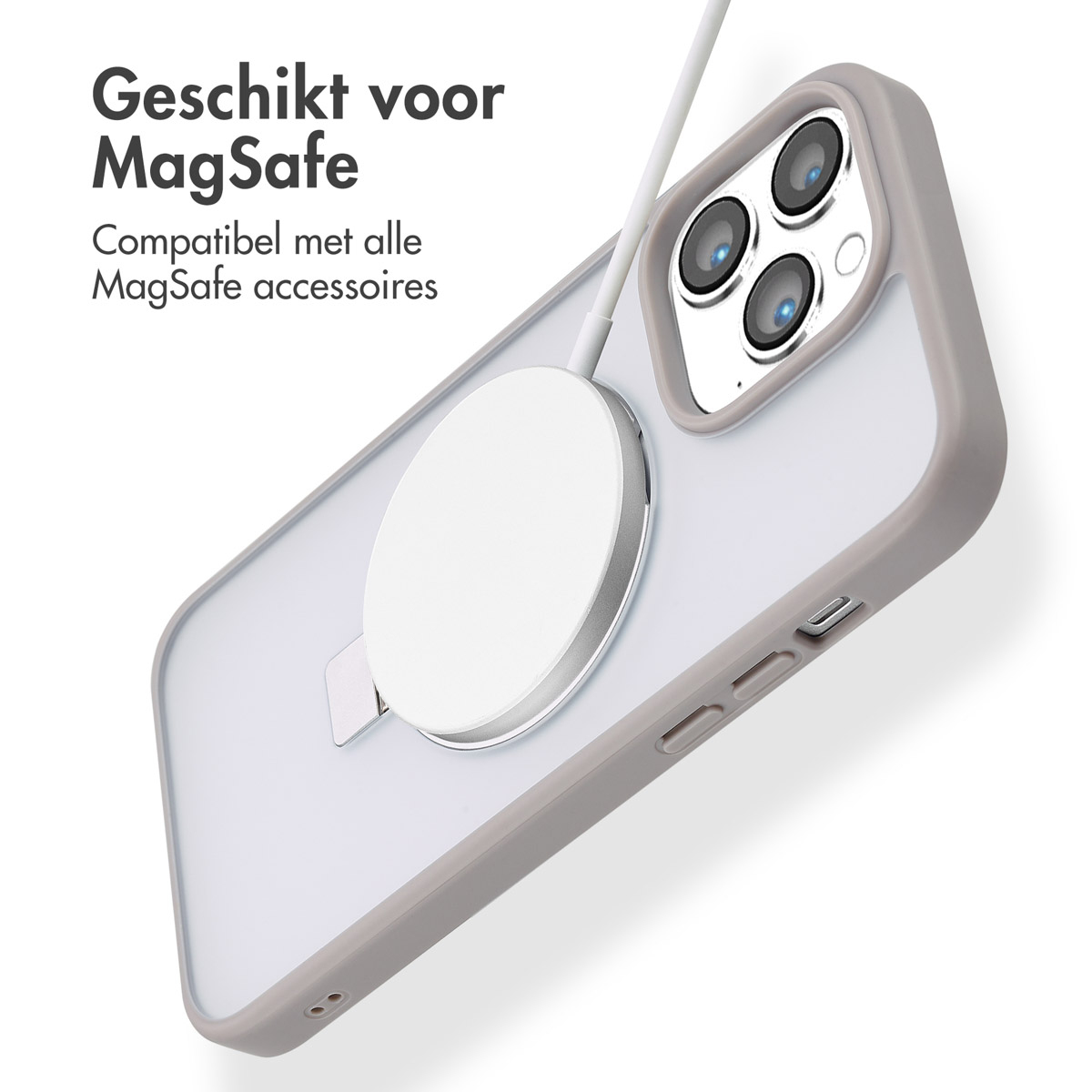 Dit kan zowel in een liggende positie of een staande positie. Daarnaast is de hoes getest op vallen tot 2 meter hoogte, waardoor je jouw smartphone met een gerust hart meeneemt. Geschikt voor MagSafe Dankzij de ingebouwde magneet, maak je moeiteloos gebruik van magnetische accessoires.
