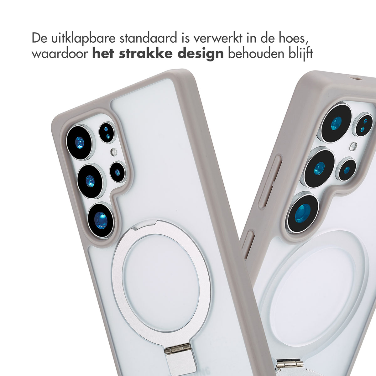 Denk hierbij aan aan een magnetische draadloze oplader, ringgreep of een telefoonhouder. De krachtige magneet zorgt ervoor dat deze accessoires altijd op de ideale plek koppelen en er niet zomaar afvallen. Uitklapbare standaard Met de handige uitklapbare standaard, zet jij je telefoon moeiteloos neer.