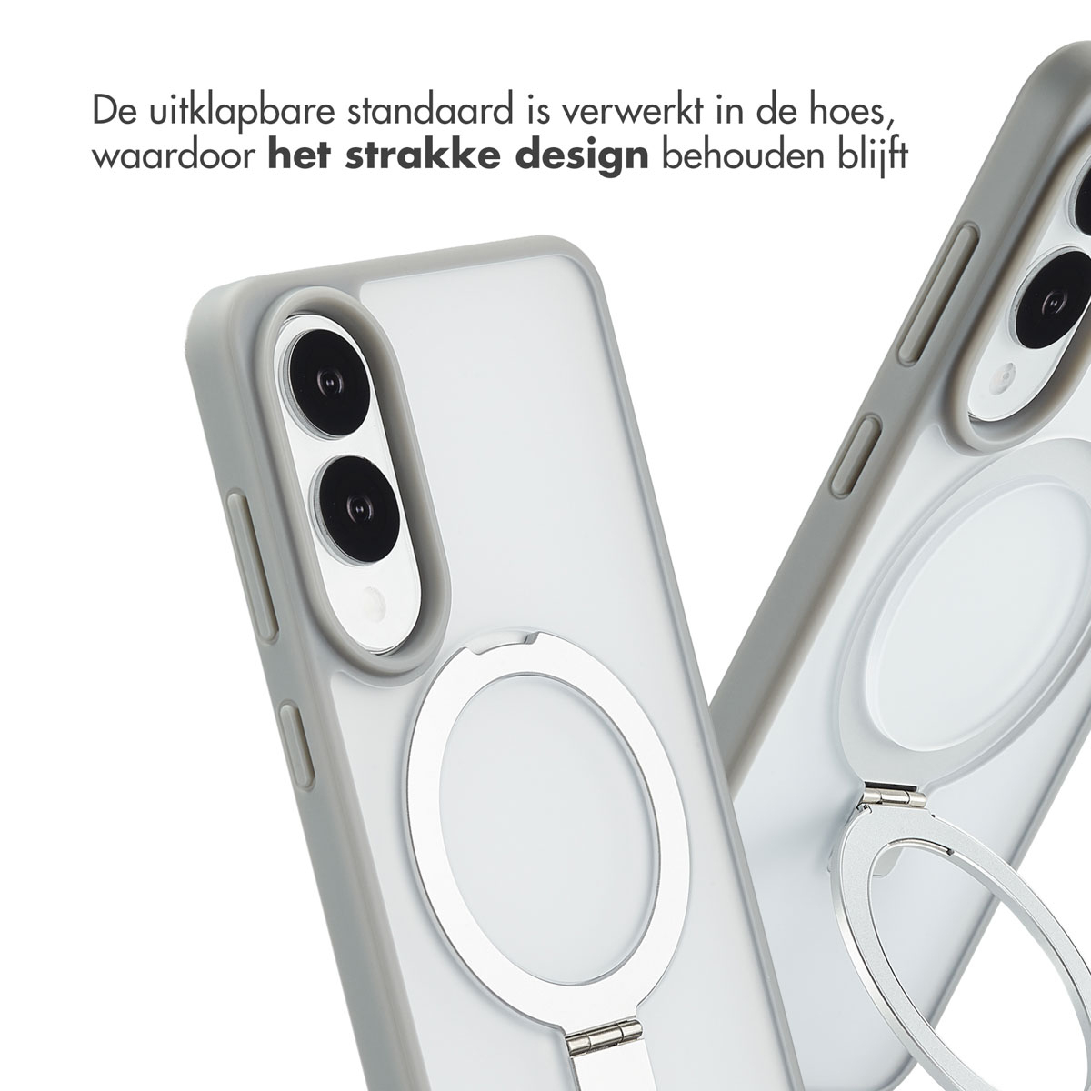 Denk hierbij aan aan een magnetische draadloze oplader, ringgreep of een telefoonhouder. De krachtige magneet zorgt ervoor dat deze accessoires altijd op de ideale plek koppelen en er niet zomaar afvallen. Uitklapbare standaard Met de handige uitklapbare standaard, zet jij je telefoon moeiteloos neer.