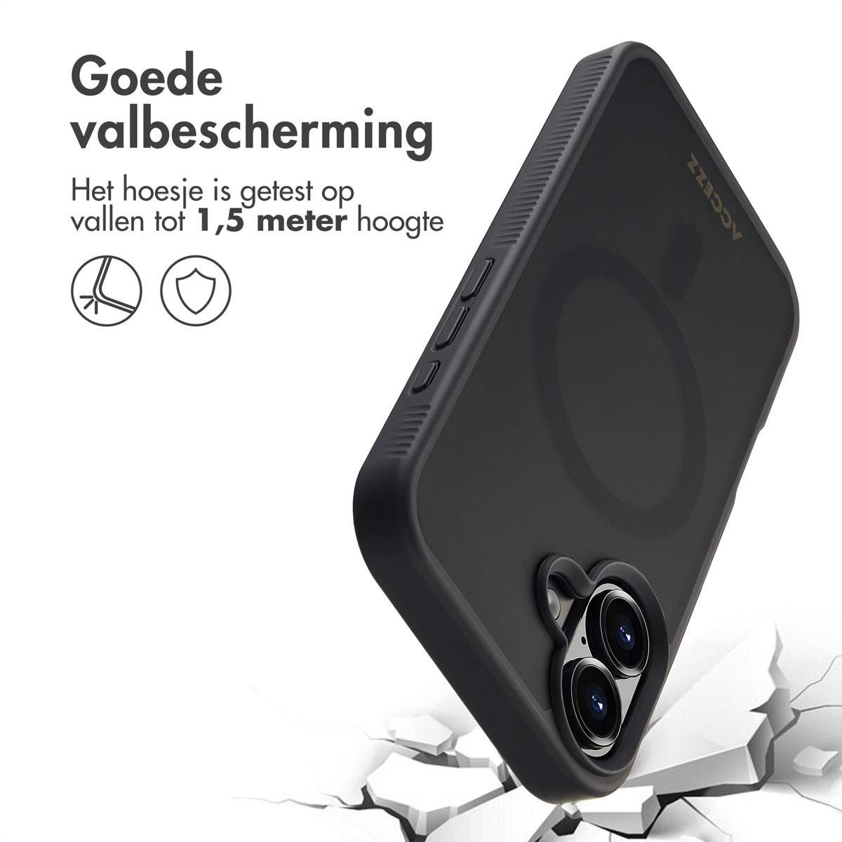 Accezz Rugged Frosted Backcover met MagSafe, Hoes, Apple, Apple iPhone 16, 15,5 cm (6.1"), Zwart