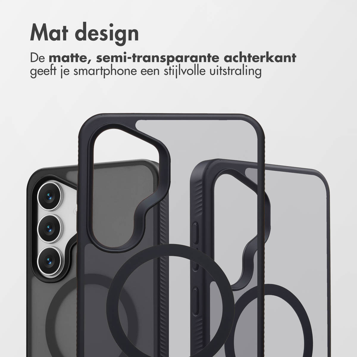 Bovendien beschikt de hoes over verhoogde randen die extra bescherming bieden aan de camera en het scherm van je smartphone. De hoes is getest op vallen tot 2 meter hoogte, hierdoor is jouw smartphone goed beschermd tegen dagelijkse schade. Mat designDe backcover heeft een semi-transparant ontwerp met een matte coating, wat zorgt voor een stijlvolle uitstraling.