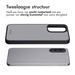 Bovendien beschikt de hoes over verhoogde randen die extra bescherming bieden aan de camera en het scherm van je smartphone. De hoes is getest op vallen tot 2 meter hoogte, hierdoor is jouw smartphone goed beschermd tegen dagelijkse schade. Mat designDe backcover heeft een semi-transparant ontwerp met een matte coating, wat zorgt voor een stijlvolle uitstraling.