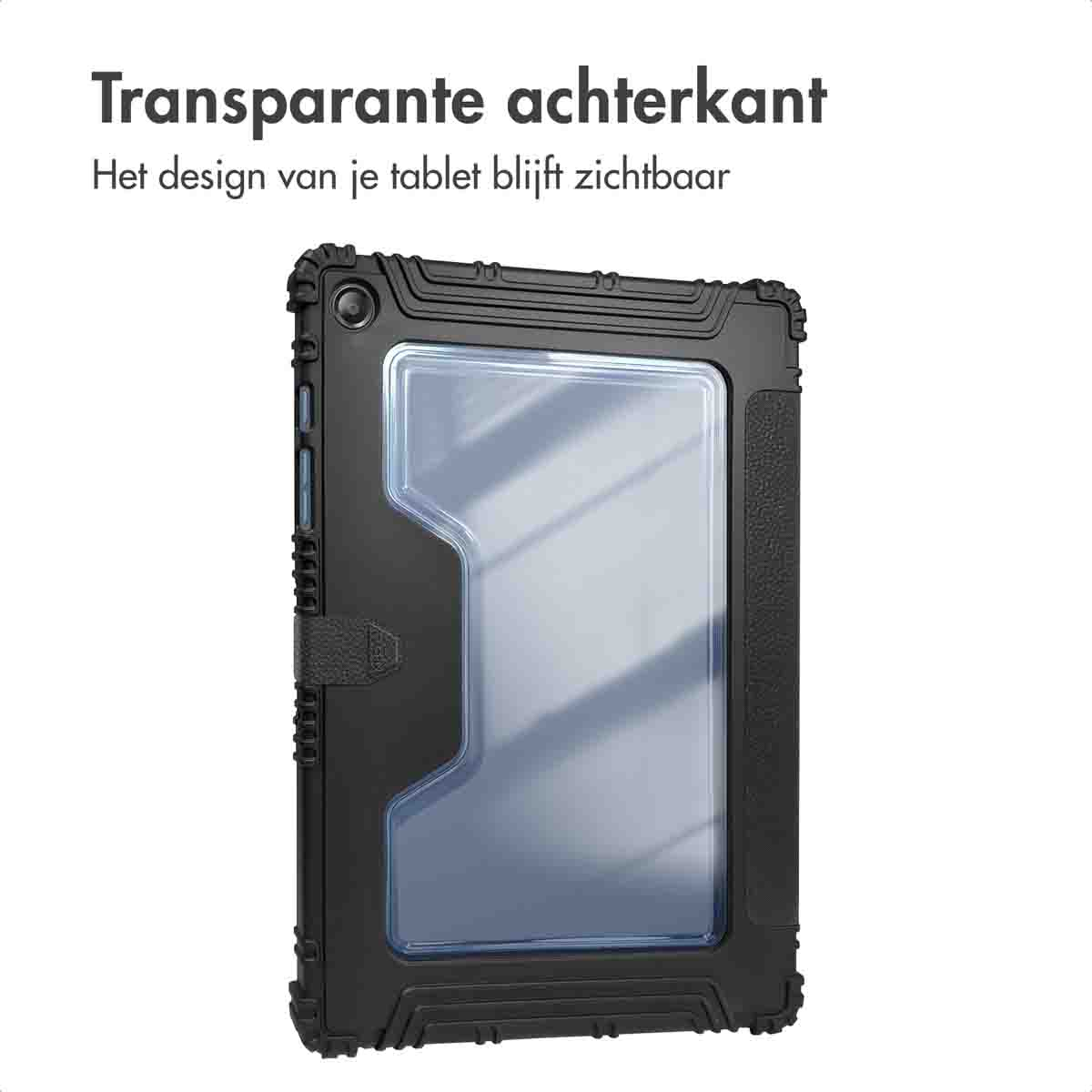 Dankzij het hoogwaardige kunstleder en de transparante achterkant blijft het design van je tablet mooi zichtbaar, terwijl je toestel optimaal beschermd is tegen vallen tot wel 1 meter hoogte. De hoes is voorzien van een handige standaard, waardoor je altijd comfortabel kunt werken, lezen of ontspannen. Valbescherming tot 1 meterMet de Accezz Rugged Trifold Bookcase hoef je je geen zorgen te maken over ongelukjes.