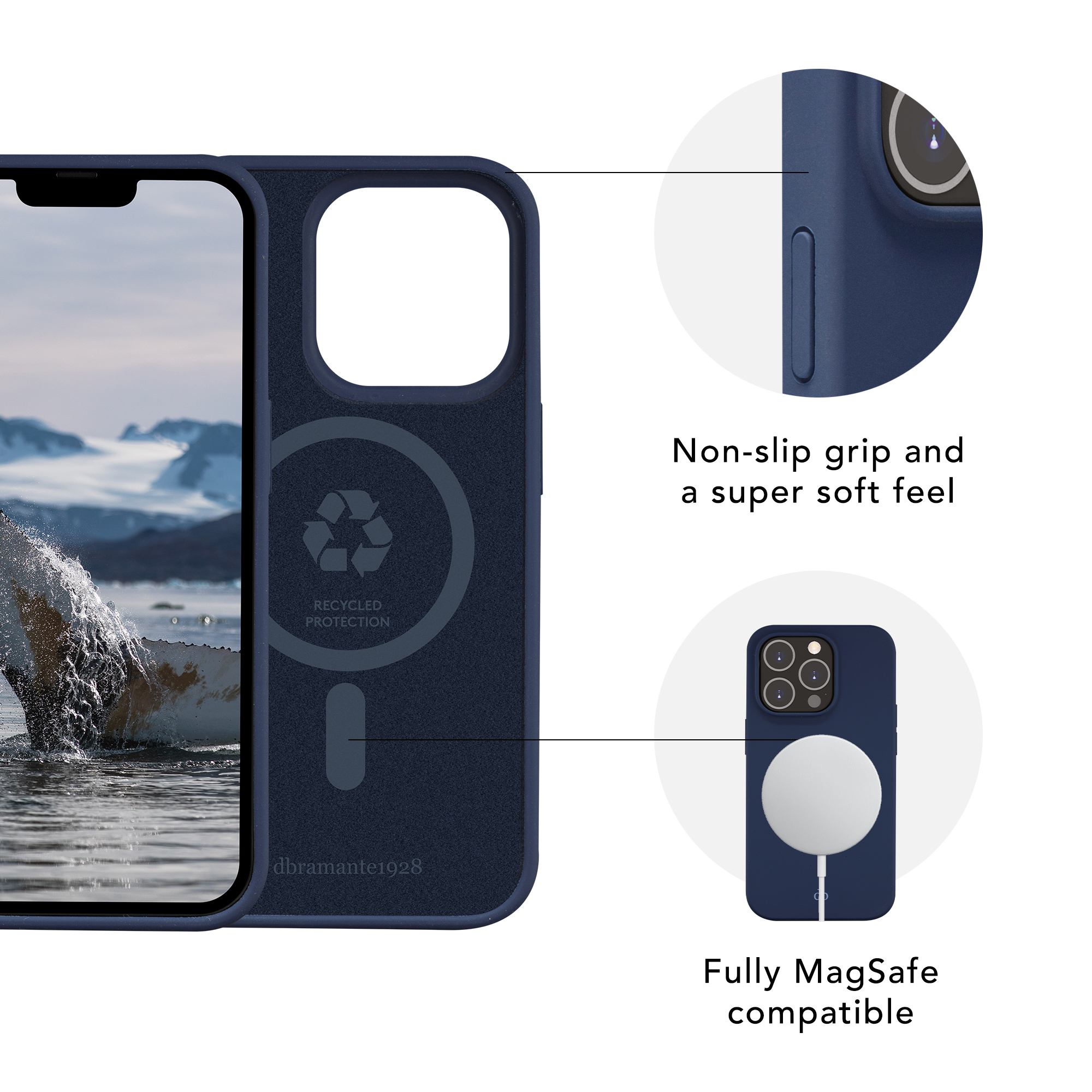 Kunststoffen voor eenmalig gebruik vervuilen onze zeeën en beschadigen de natuur als nooit tevoren. Bescherm je telefoon en tegelijkertijd de planeet met deze stijlvolle allround, ultradunne, snap-on MagSafe compatibele beschermhoes, gemaakt van 100% hergebruikte en gerecyclede materialen en 100% recyclebaar. De hoes, die in Denemarken is ontworpen door een klimaatbewust bedrijf en milieuvriendelijk is zonder afbreuk te doen aan kwaliteit, bescherming, ontwerp of functionaliteit, voelt heel prettig in de hand en wordt niet gemaakt ten koste van de aarde.