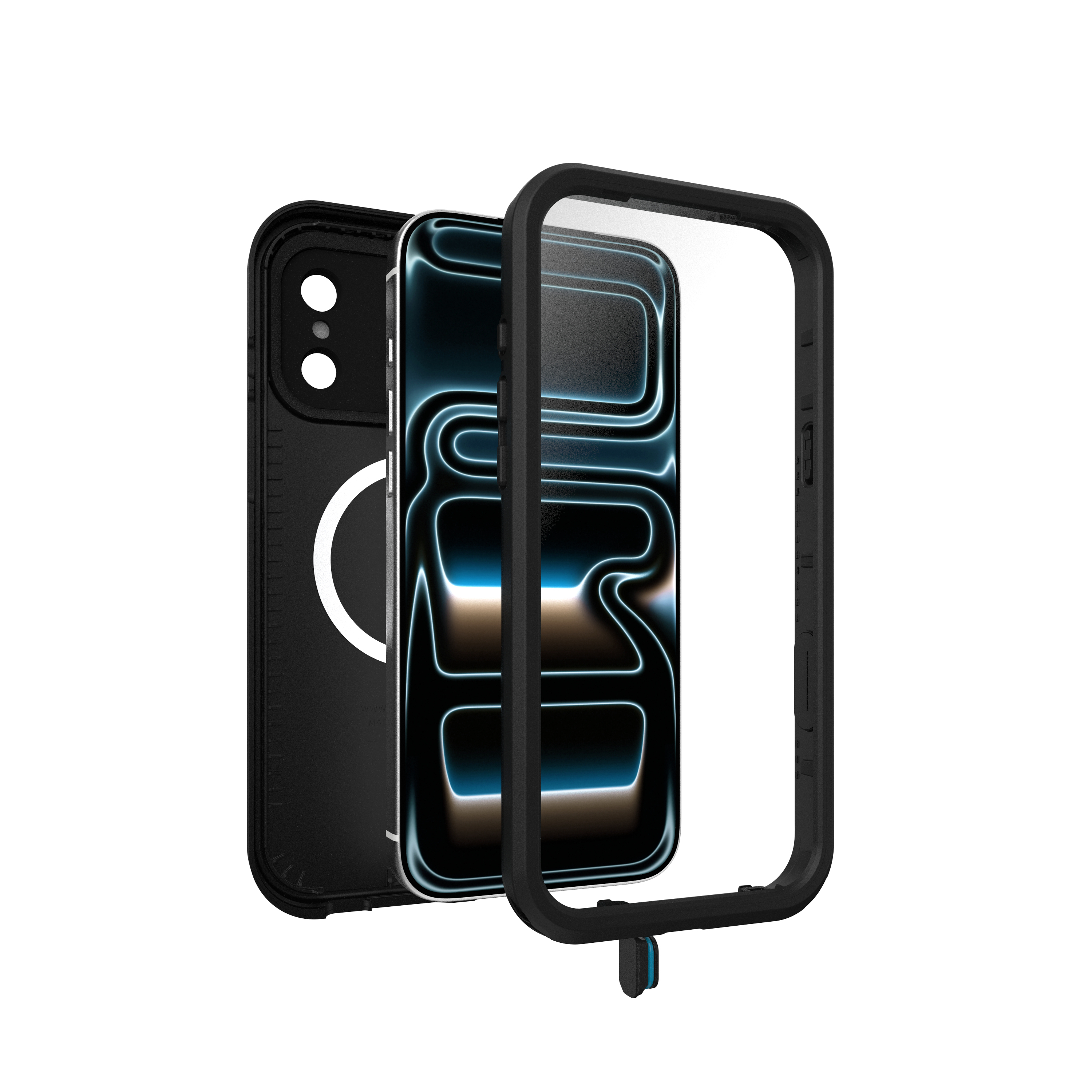 Duik in de actie met de Frē Series. De waterdichte hoes uit de Frē Series is oorspronkelijk ontworpen en ontwikkeld door LifeProof en is verzegeld, zodat je hem 1 uur lang tot 2 meter onder water kunt houden. Het bedekt je telefoon aan alle kanten met een geïntegreerde screenprotector en is beoordeeld op 3x de valbescherming volgens de militaire norm om harde valpartijen te overleven. De Frē Series klikt stevig vast op MagSafe-accessoires en heeft een ingebouwde Camera Control-knop die volledig is verzegeld en werkt met Apple's visual intelligence.