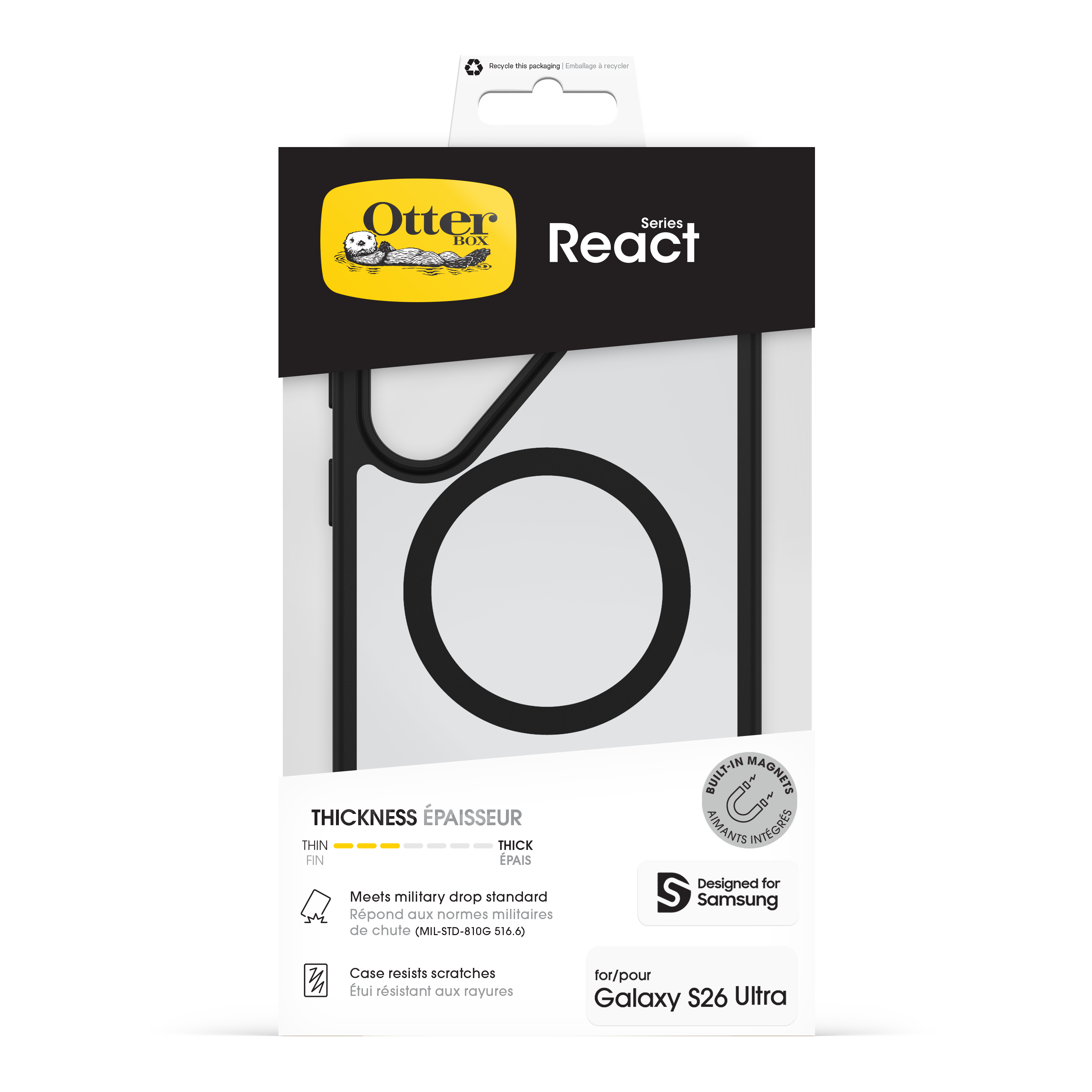 OtterBox React Magnets Series voor Samsung Galaxy S26 Ultra, Black Crystal, Hoes, Samsung, Galaxy S26 Ultra, 17,5 cm (6.9"), Zwart, Transparant