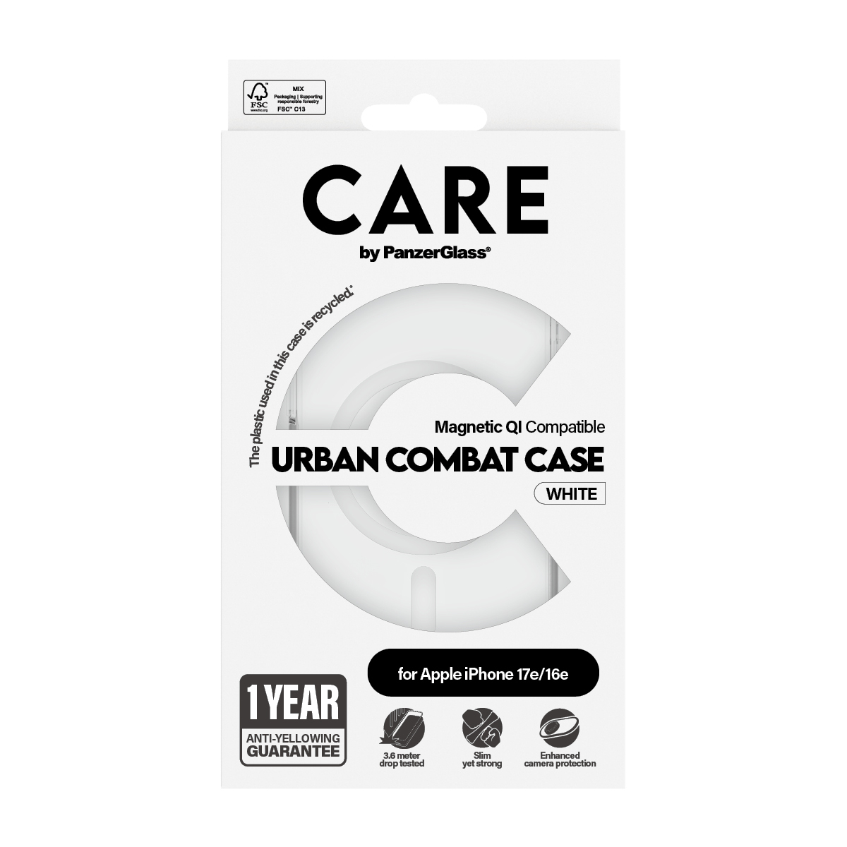 PanzerGlass CARE™ by ® Urban Combat Case Transparent w. White Qi Compatible iPhone 17e | 16e, Hoes, Apple, Apple - iPhone 16e, Apple - iPhone 17e, Transparant