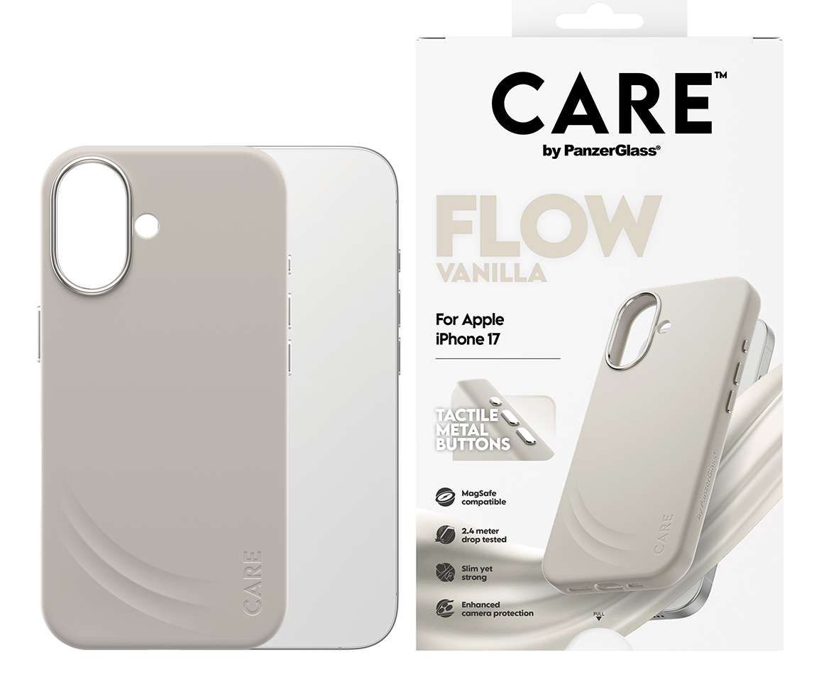 PanzerGlass CARE by ® FLOW Case Vanilla w. MagSafe iPhone 17. Type etui: Hoes, Merkcompatibiliteit: Apple, Compatibiliteit: Apple - iPhone 17, Maximale schermgrootte: 16 cm (6.3"), Oppervlakte kleur: Monochromatisch, Kleur van het product: Beige