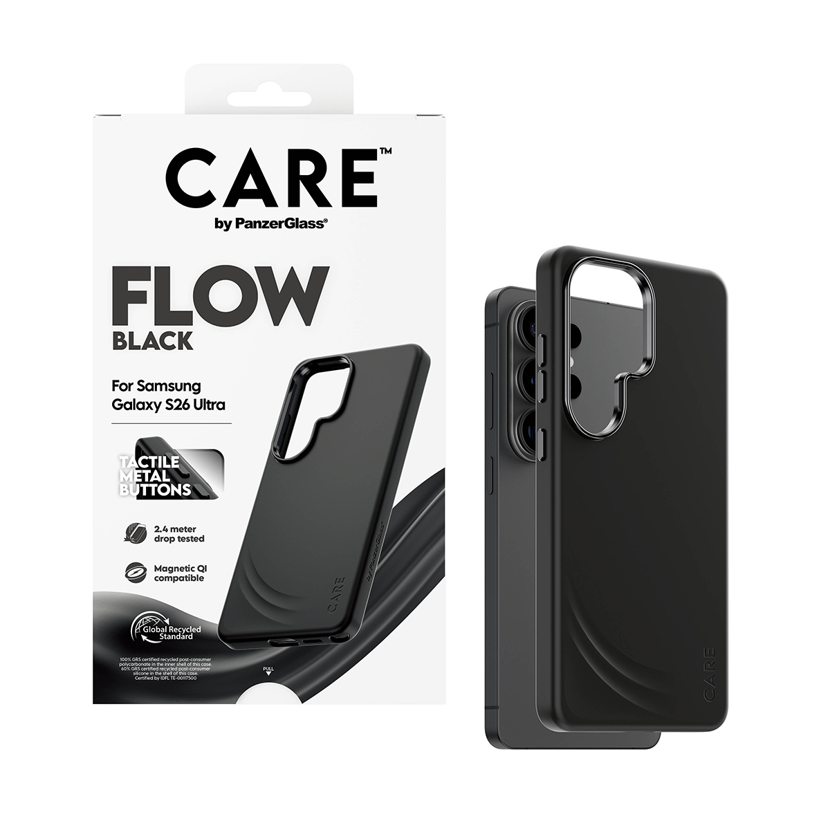 PanzerGlass CARE™ by ® Flow Case Black w. Qi Samsung Galaxy S26 Ultra. Type etui: Hoes, Merkcompatibiliteit: Samsung, Compatibiliteit: Samsung - Galaxy S26 Ultra, Kleur van het product: Zwart