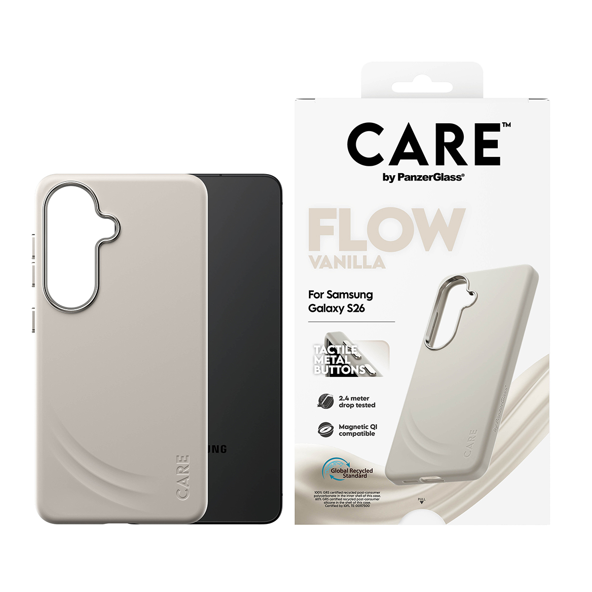 PanzerGlass CARE™ by ® Flow Case Vanilla w. Qi Samsung Galaxy S26, Hoes, Samsung, Samsung - Galaxy S26, Beige