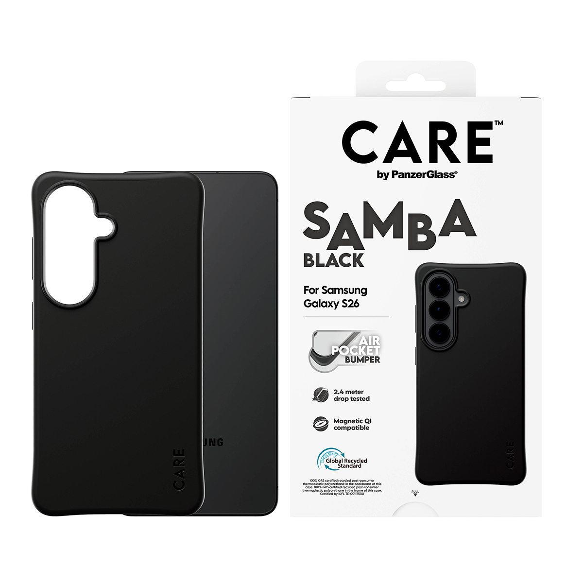 PanzerGlass CARE™ by ® Samba Case Black w. Qi Samsung Galaxy S26. Type etui: Hoes, Merkcompatibiliteit: Samsung, Compatibiliteit: Samsung - Galaxy S26, Kleur van het product: Zwart