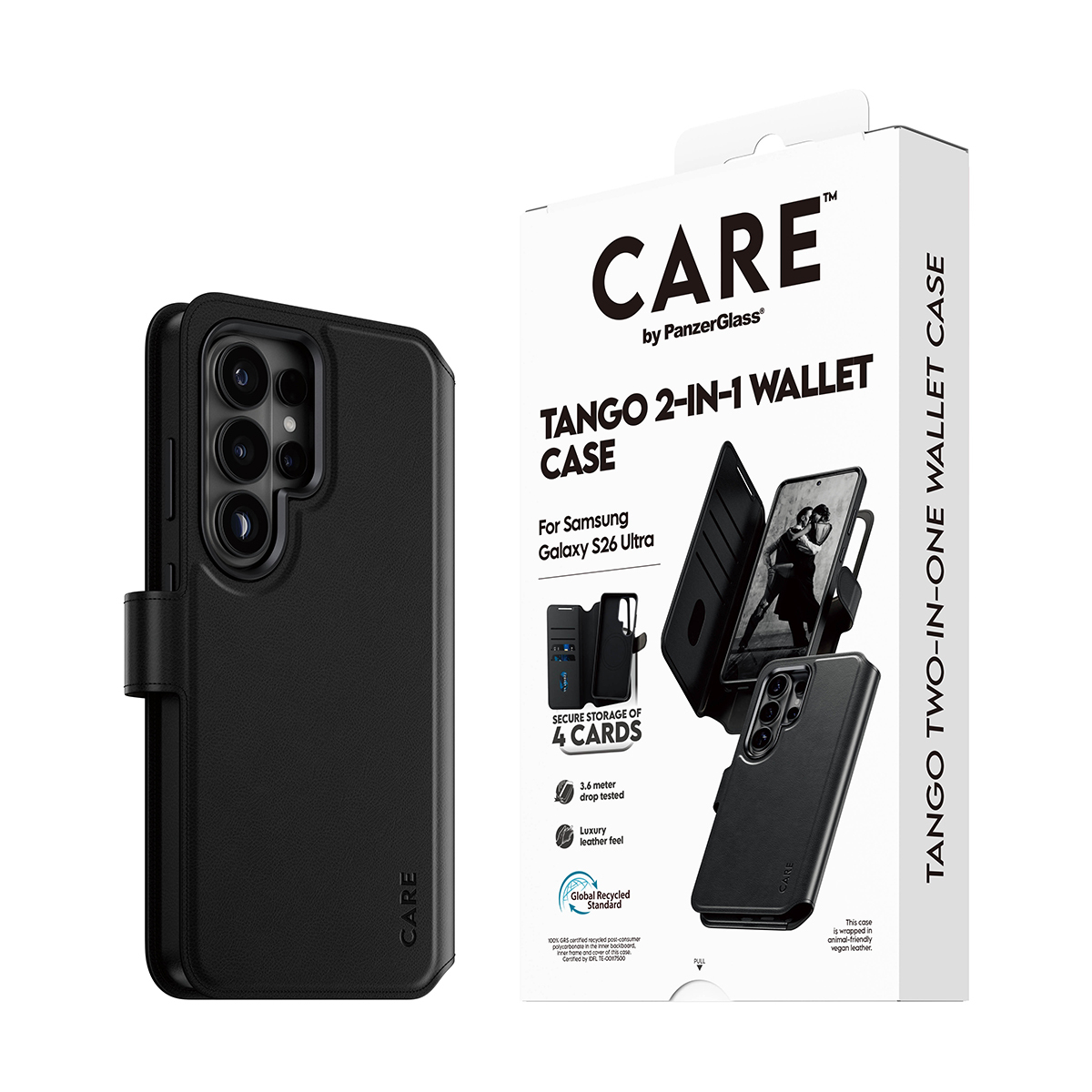 PanzerGlass CARE™ by ® Tango 2-in-1 Wallet Case w. Qi Samsung Galaxy S26 Ultra. Type etui: Hoes, Merkcompatibiliteit: Samsung, Compatibiliteit: Samsung - Galaxy S26 Ultra, Kleur van het product: Transparant