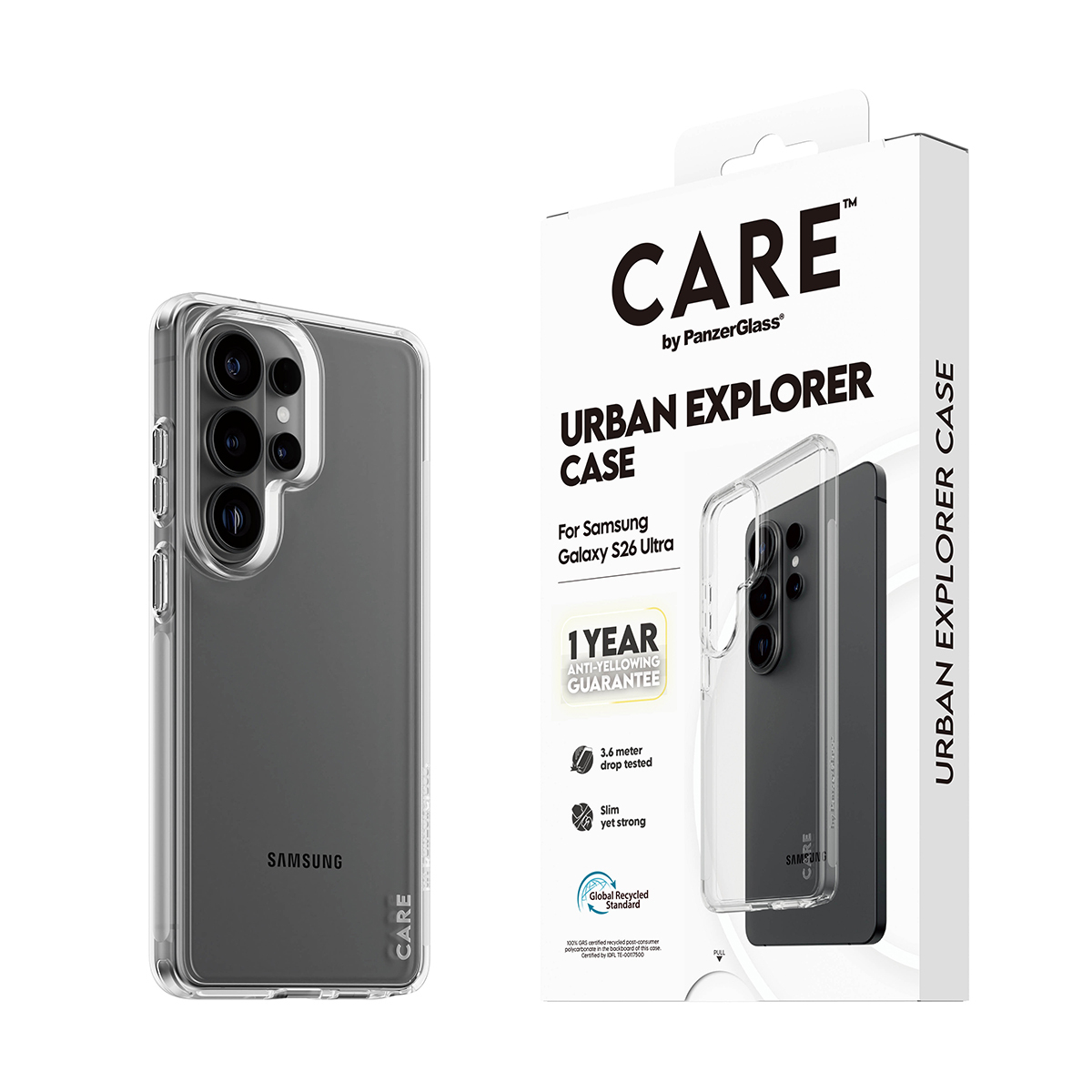 PanzerGlass CARE™ by ® Urban Explorer Case Transparent Samsung Galaxy S26 Ultra. Type etui: Hoes, Merkcompatibiliteit: Samsung, Compatibiliteit: Samsung - Galaxy S26 Ultra, Kleur van het product: Transparant