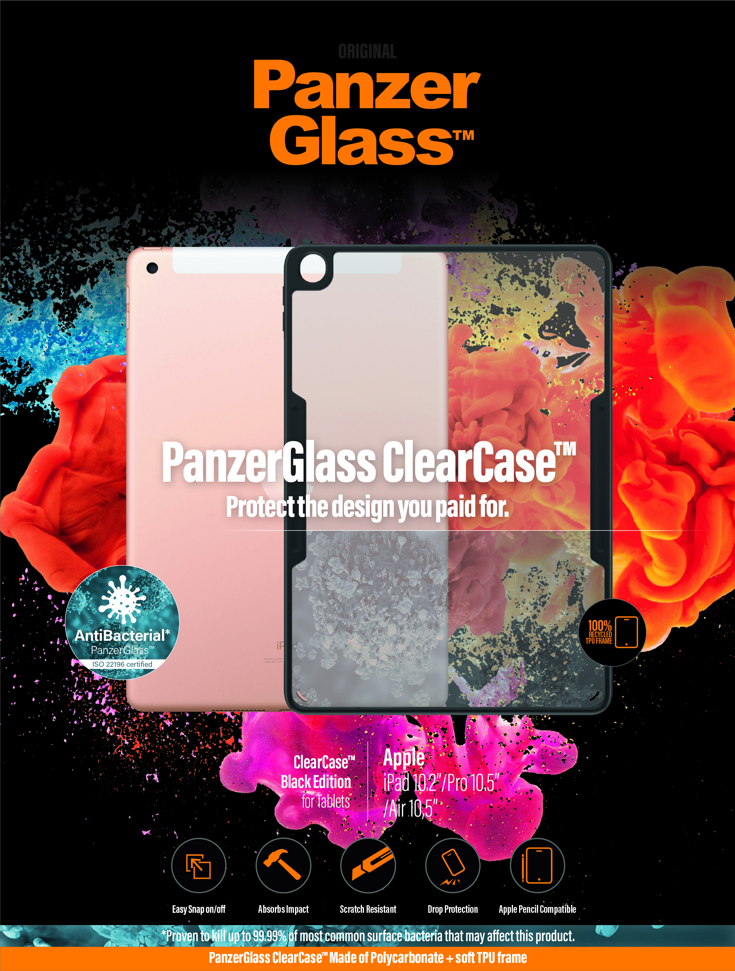 PanzerGlass ® ClearCase™ iPad 10.2″ (2019-2021) | Pro 10.5'' (2017) | Air 10.5″ (2019). Type etui: Hoes, Merkcompatibiliteit: Apple, Compatibiliteit: Apple - iPad 10.2″, Apple - iPad Pro 10.2″, Apple - iPad Air 10, 5″, Kleur van het product: Zwart