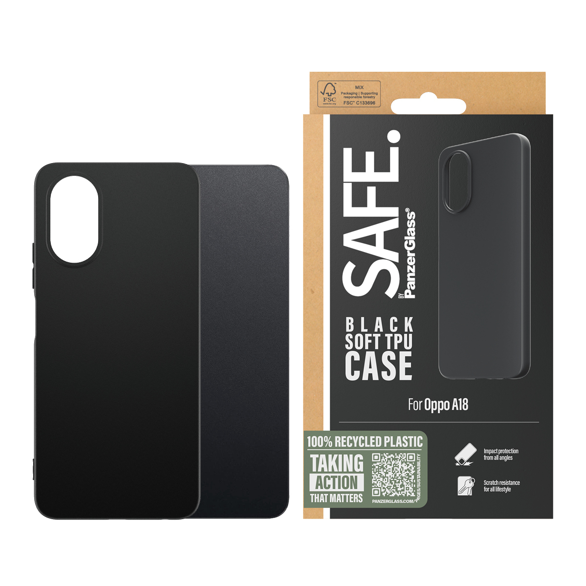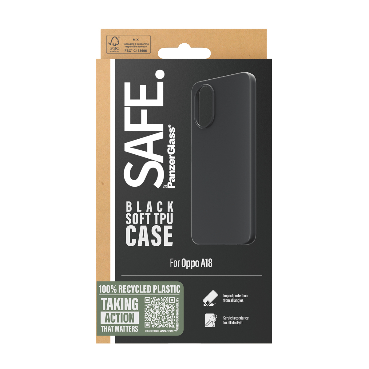 PanzerGlass SAFE. by ® TPU Case Black Oppo A18. Type etui: Hoes, Merkcompatibiliteit: OPPO, Compatibiliteit: OPPO - A18, Kleur van het product: Zwart