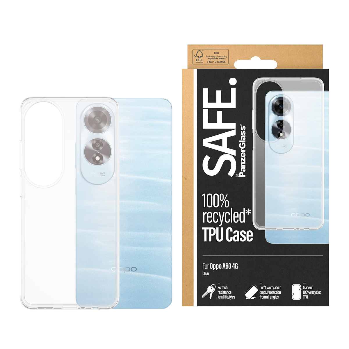 PanzerGlass SAFE. by ® TPU Case Transparent Oppo A60 4G, Hoes, OPPO, OPPO - A60 4G, Transparant