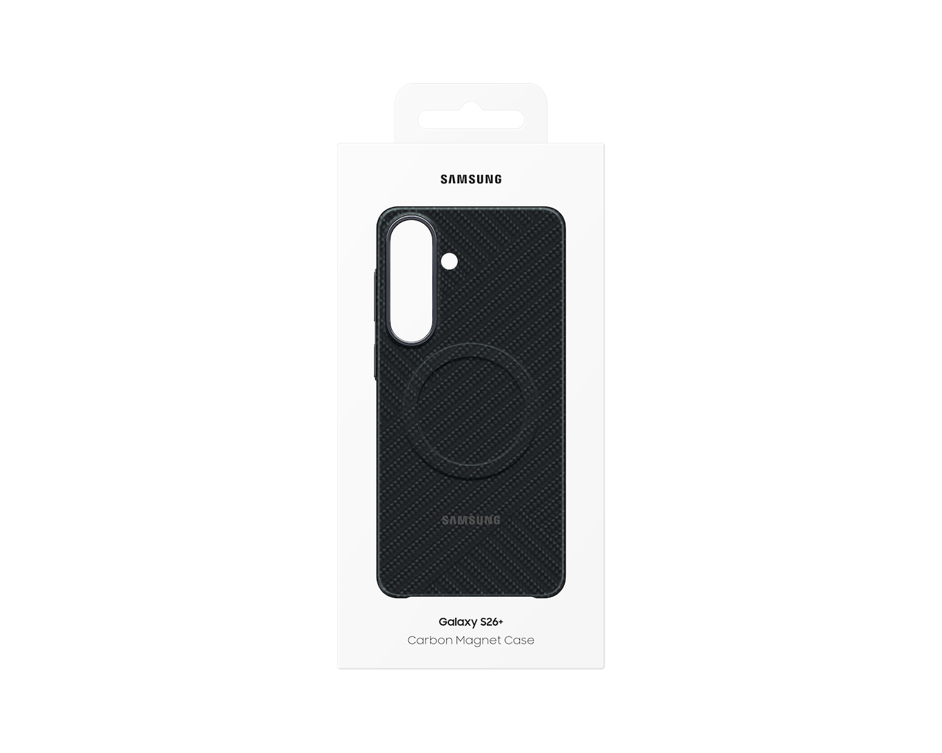 Samsung M2 Carbon Magnet Black. Type etui: Hoes, Merkcompatibiliteit: Samsung, Compatibiliteit: Galaxy S26+, Maximale schermgrootte: 17 cm (6.7"), Oppervlakte kleur: Patroon, Kleur van het product: Zwart