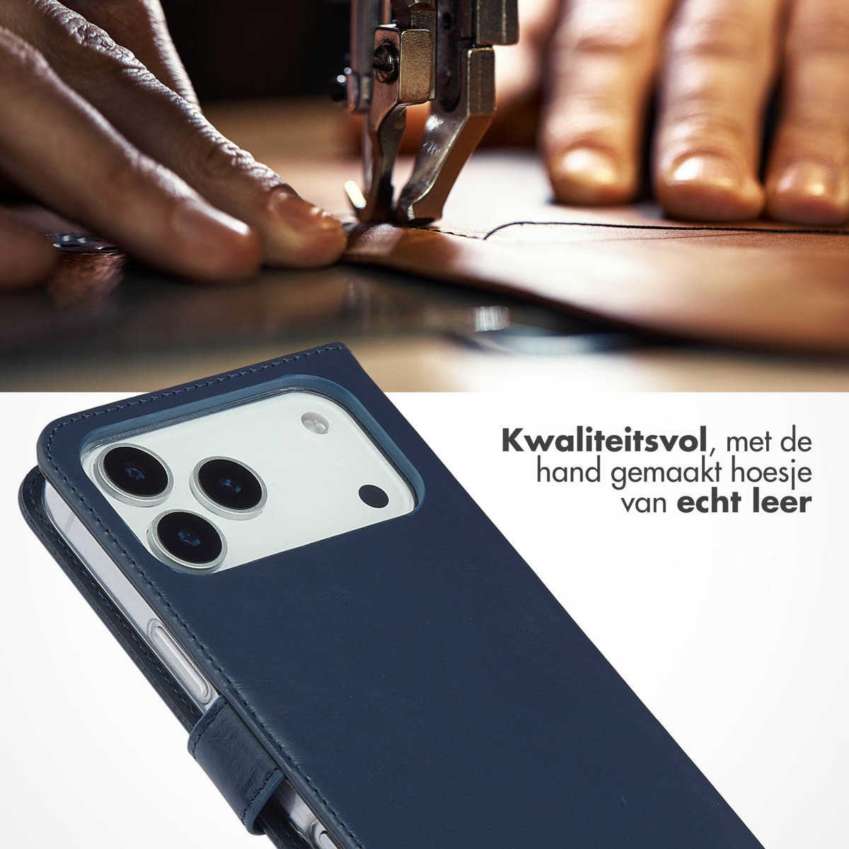 Echt Leren Bookcase Apple iPhone 17 Pro Max - Blauw