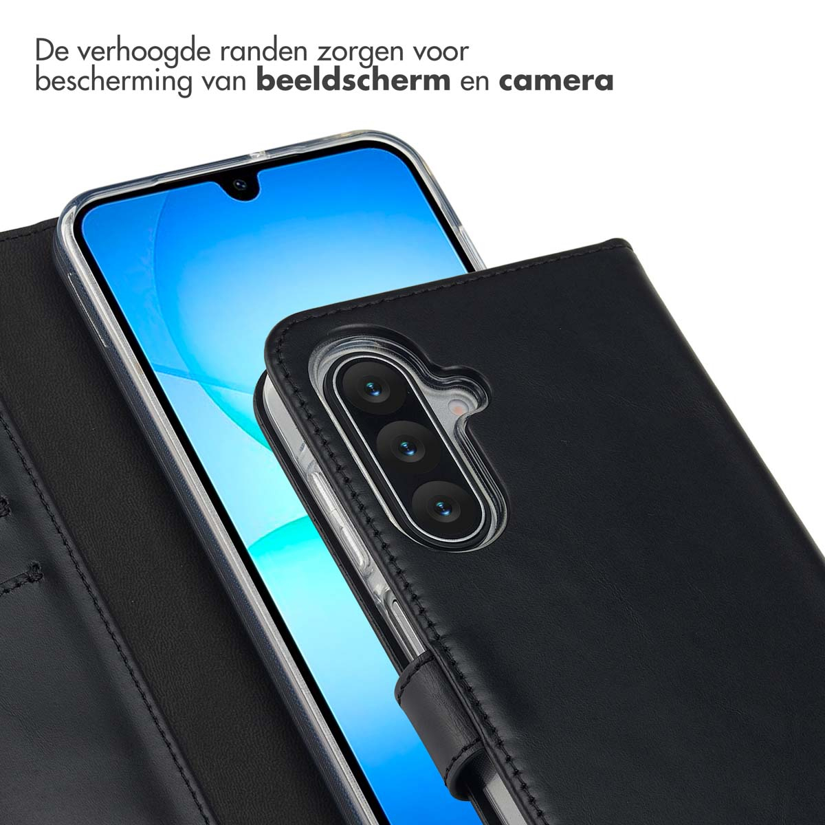 Jouw Samsung Galaxy A17 (5G) of A17 (4G) krijgt een stijlvolle upgrade met de Selencia Echt Leren Bookcase. Het hoogwaardige echte leer ontwikkelt met de tijd een natuurlijke glans en geeft extra karakter aan je toestel. De case beschermt het scherm en de camera met verhoogde randen.