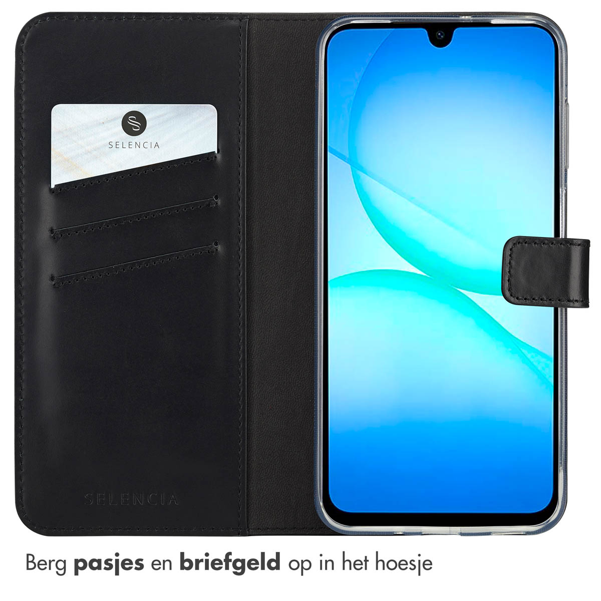 Selencia Echt Lederen Bookcase, Flip case, Samsung, Samsung Galaxy A17 (5G)/Samsung Galaxy A17 (4G), 17 cm (6.7"), Zwart