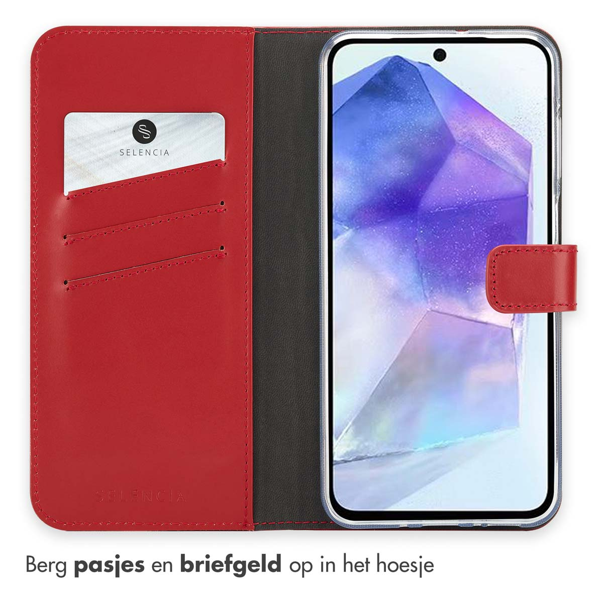 Jouw Samsung Galaxy A26 verdient een stijlvolle, praktische hoes die meegaat in dagelijks gebruik. Deze Selencia Echt Leren Bookcase in rood combineert zacht, echt leder dat na verloop van tijd een mooie glans krijgt met ruimte voor drie pasjes en briefgeld, een krachtige magneetsluiting en een schokabsorberende siliconen houder voor valbescherming tot 1 meter, waardoor stijl en gebruiksgemak samenkomen. De voordelen van de Selencia Echt Leren Bookcase: