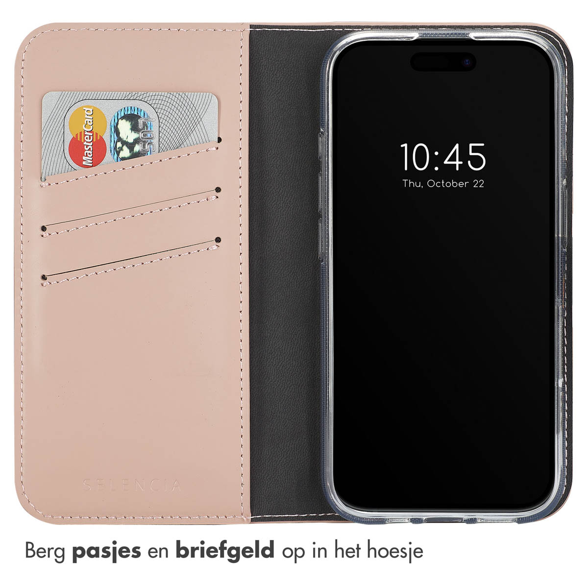 Selencia Echt Lederen Bookcase, Apple, Apple iPhone 16 Plus, Lichtroze