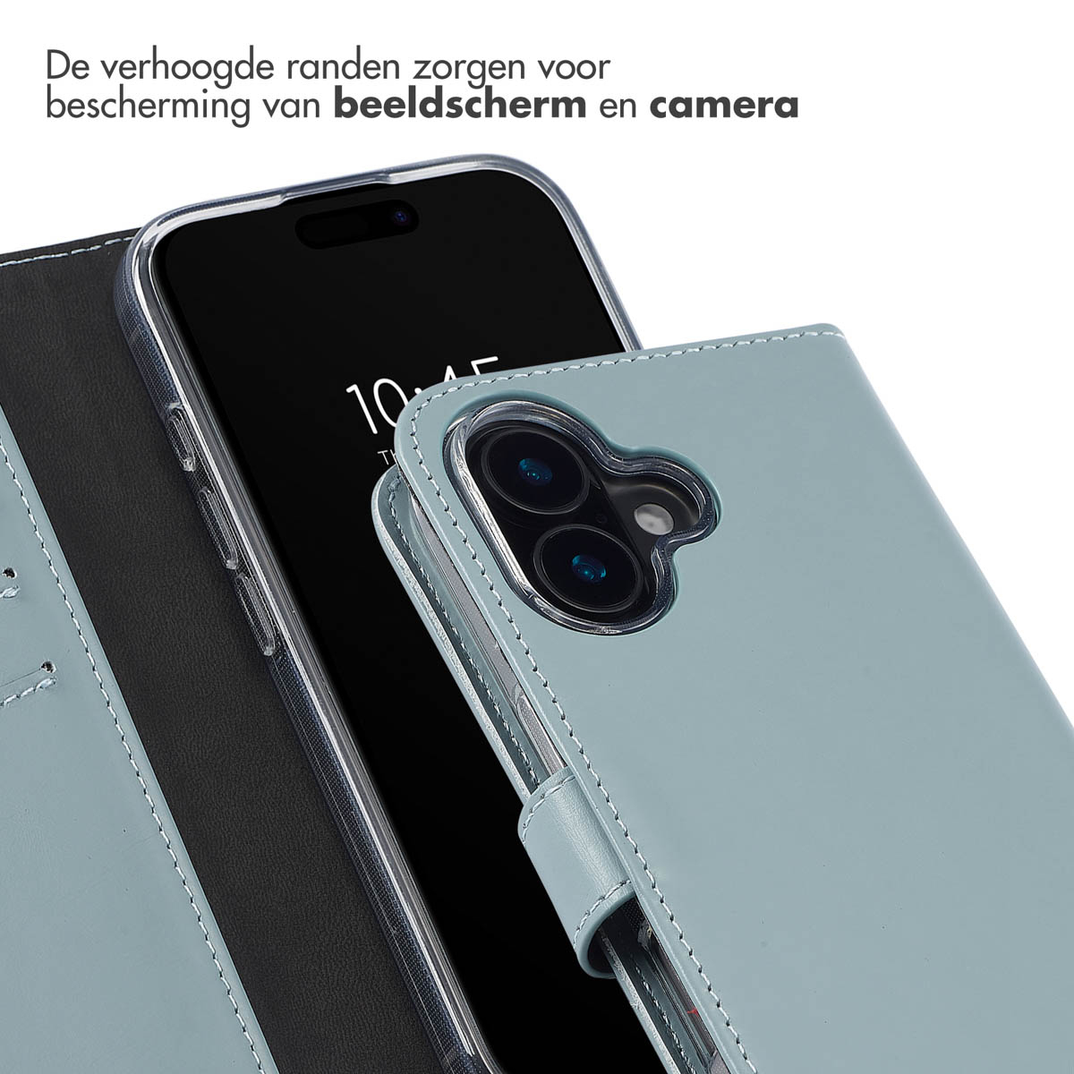 Echt Leren Bookcase Apple iPhone 16 Plus - Air Blue